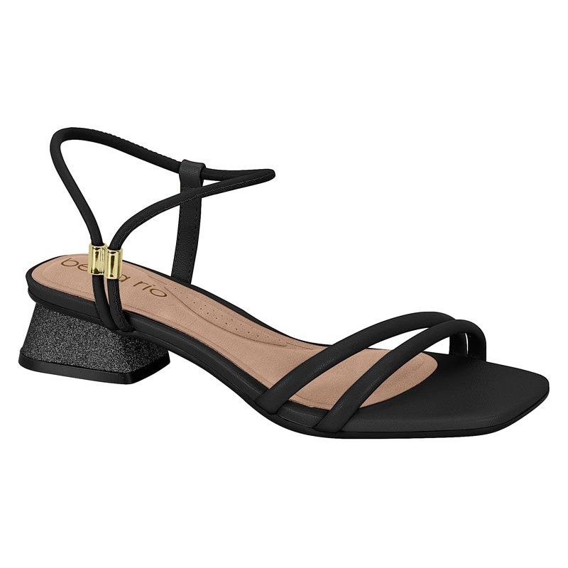 Sandália Feminina Beira Rio Salto Médio Tiras Finas Efeito Metalizado
