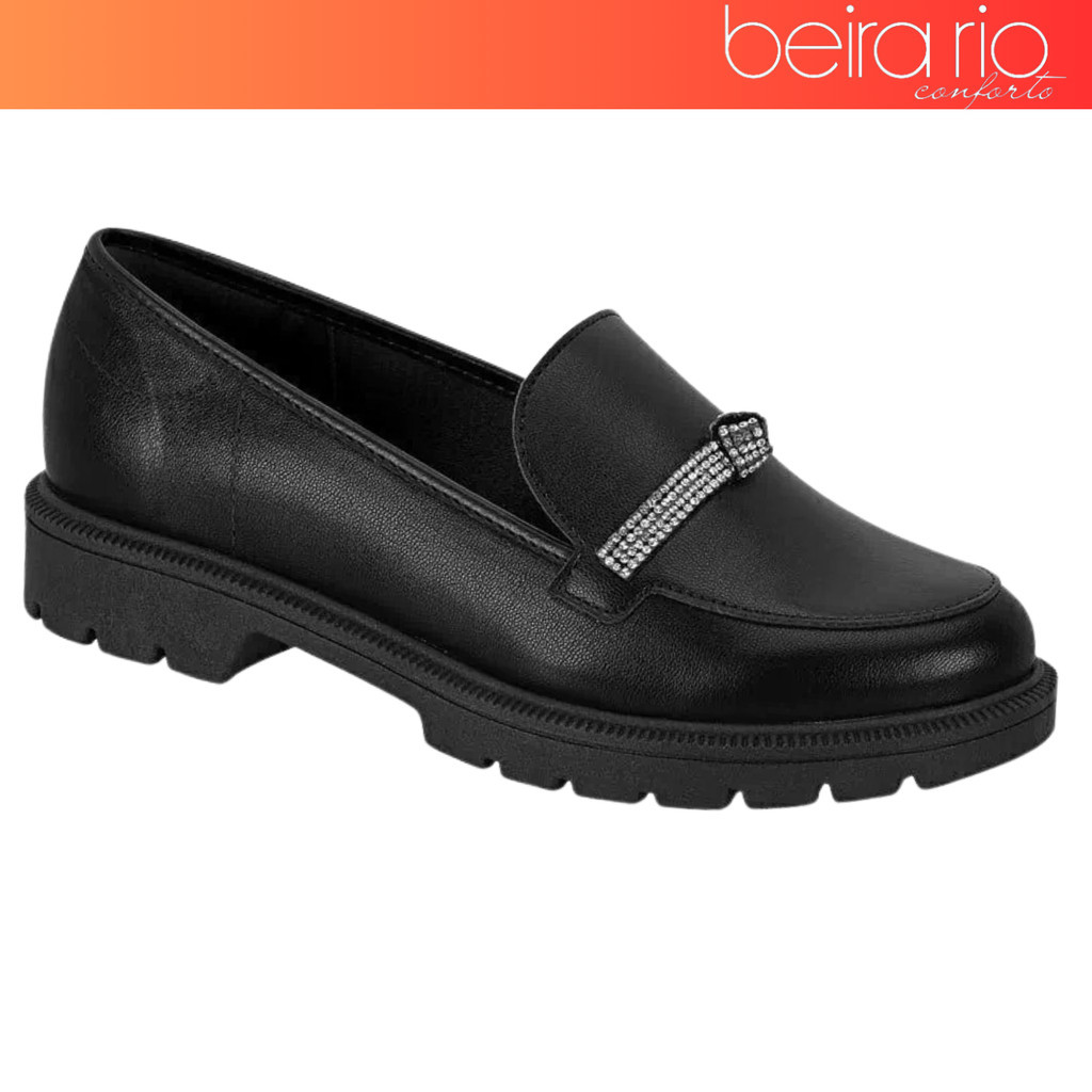 Mocassim Feminino Beira Rio Tratorado Loafer Tira em Brilho Conforto