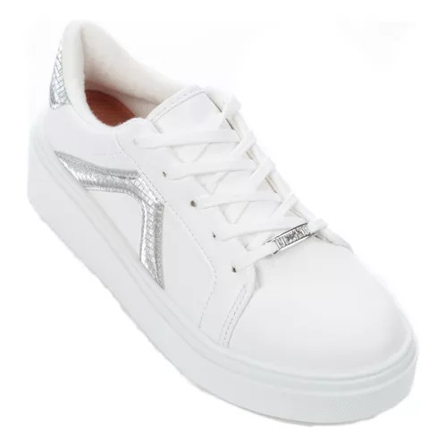 Tênis Feminino Vizzano Casual Plataforma Detalhe Prata Metalizado Cinderela Conforto