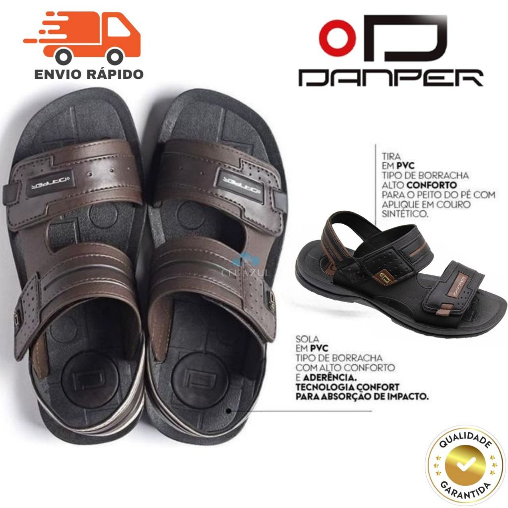 Sandália Masculina Danper Original Confortável Solado Borracha Velcro Motoqueiro Dia a Dia