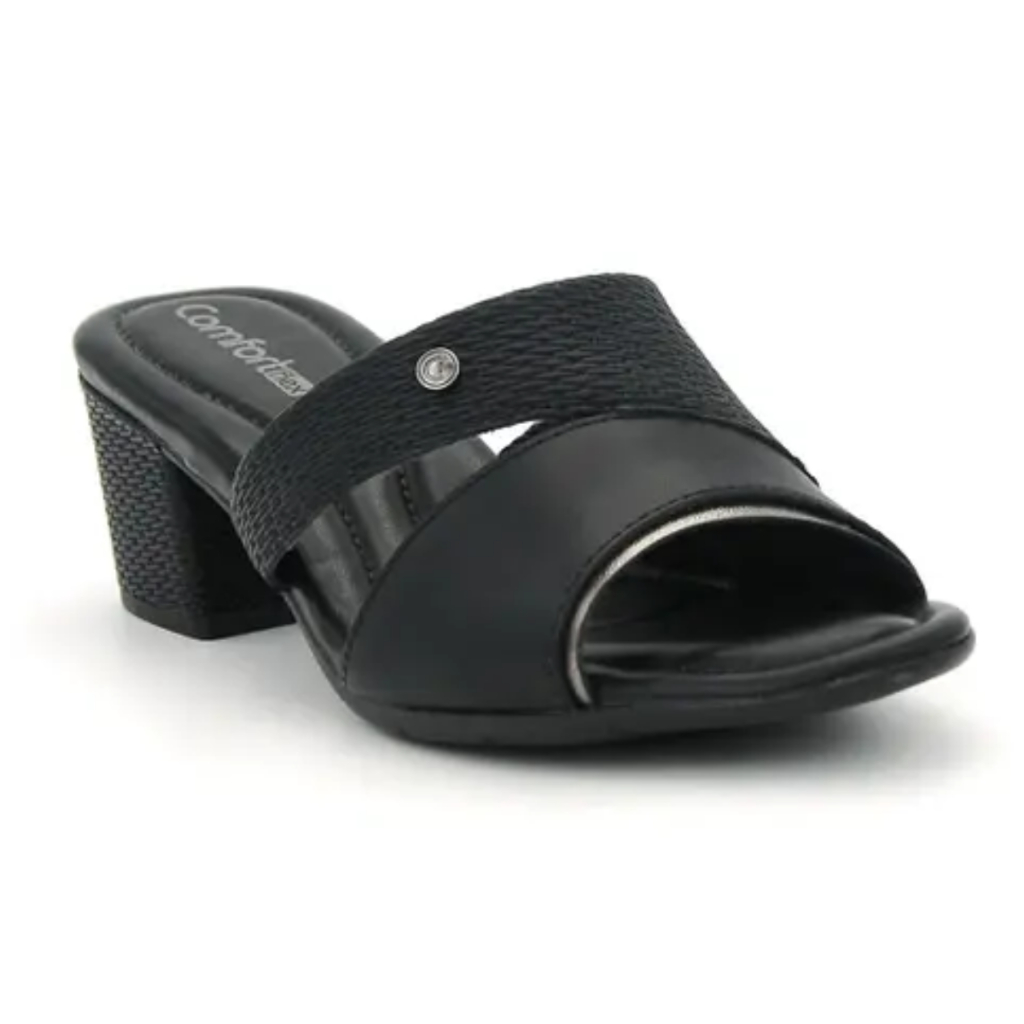 Tamanco Feminina Comfortflex Salto Grosso Lycra Paris Conforto