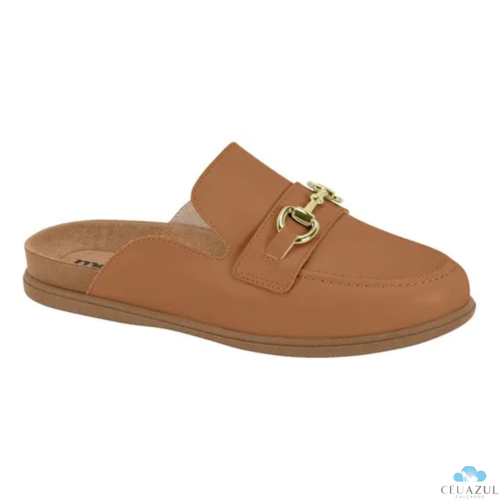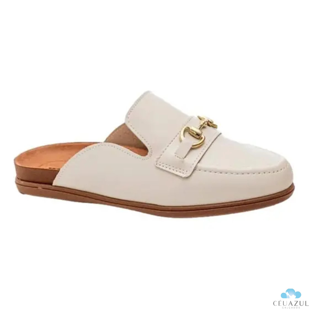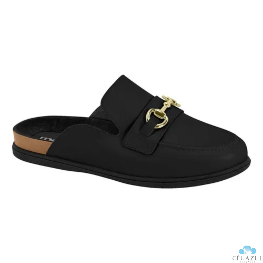 Mule Feminino Moleca Fivela Dourada Elegância Conforto Trabalho Bico Redondo