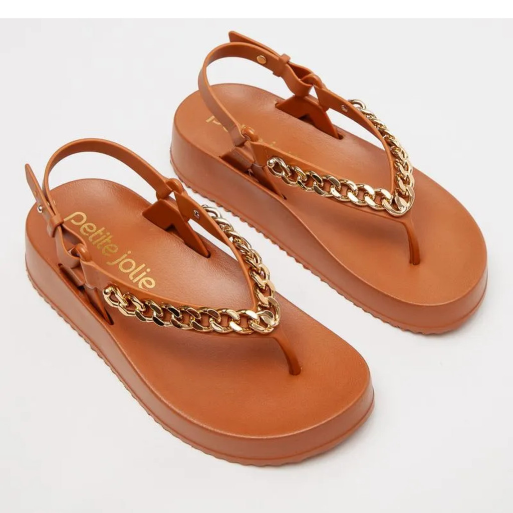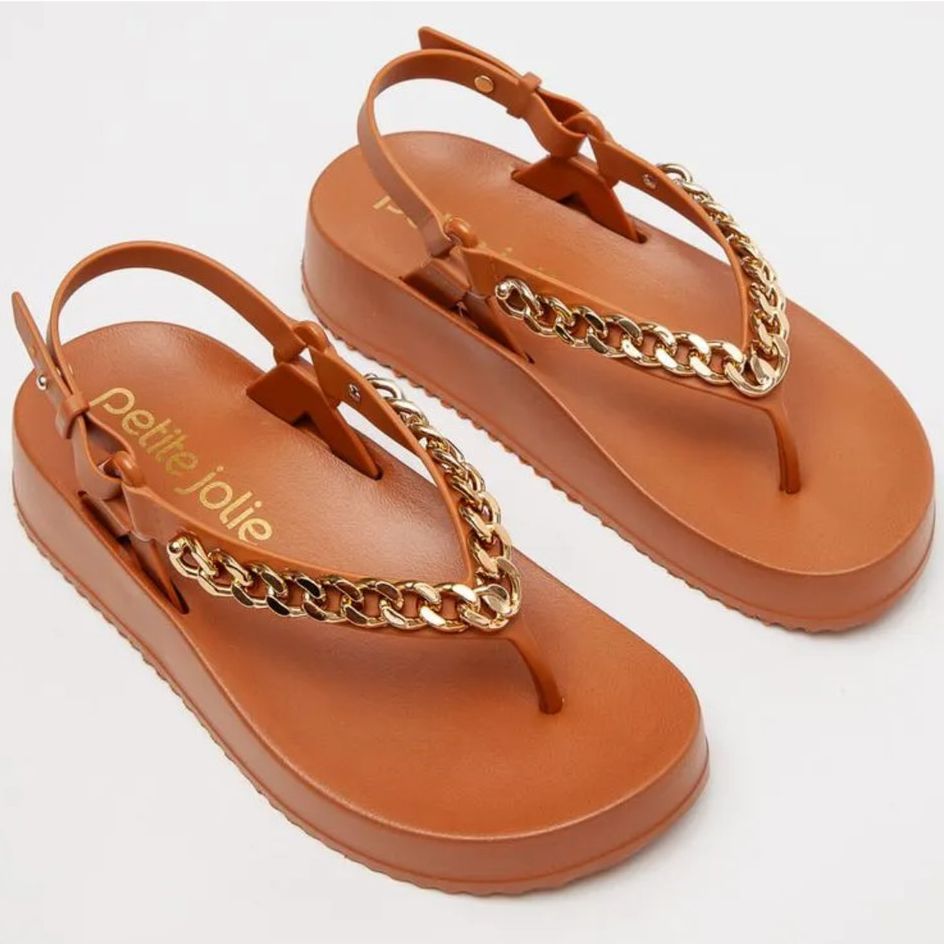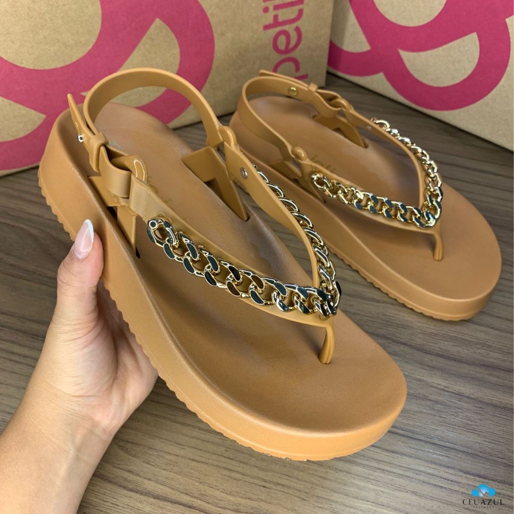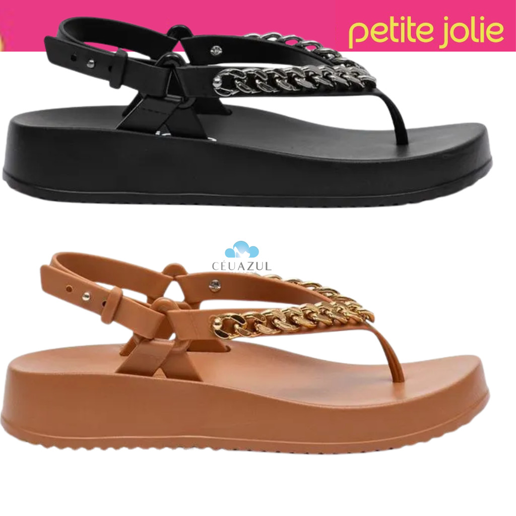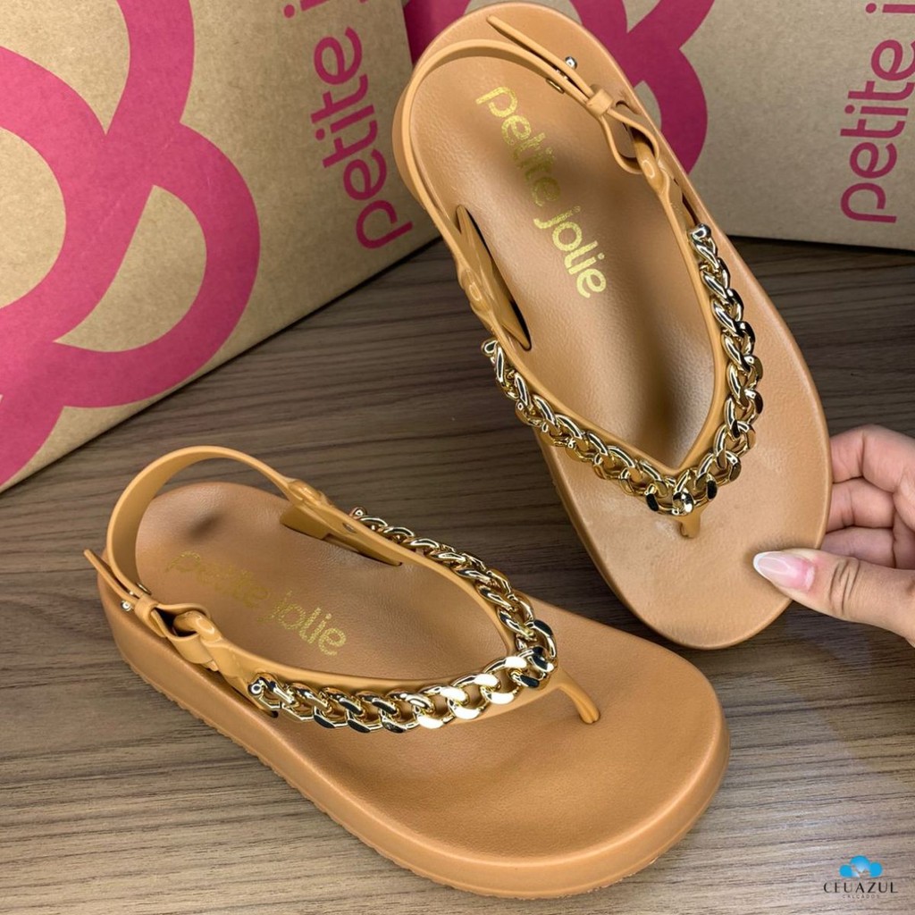 Sandália Rasteira Feminina Petite Jolie Corrente Metalizada Conforto