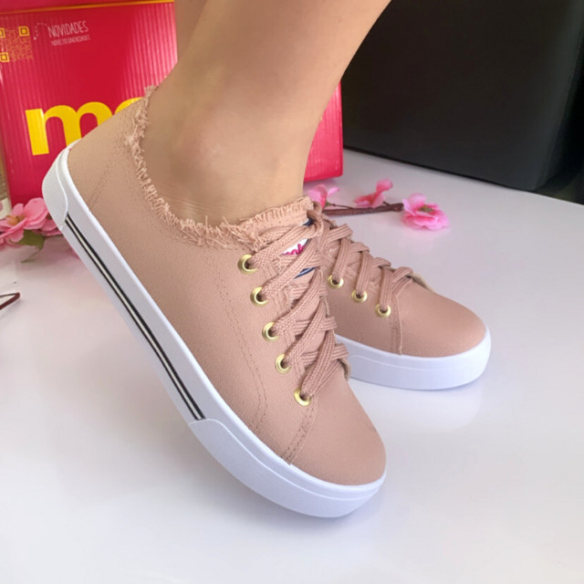 Tênis Feminino Moleca Casual Desfiado Delicado Lona Conforto
