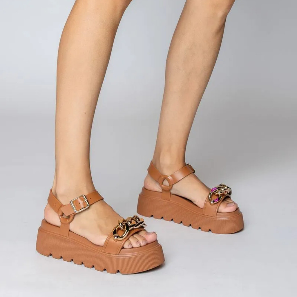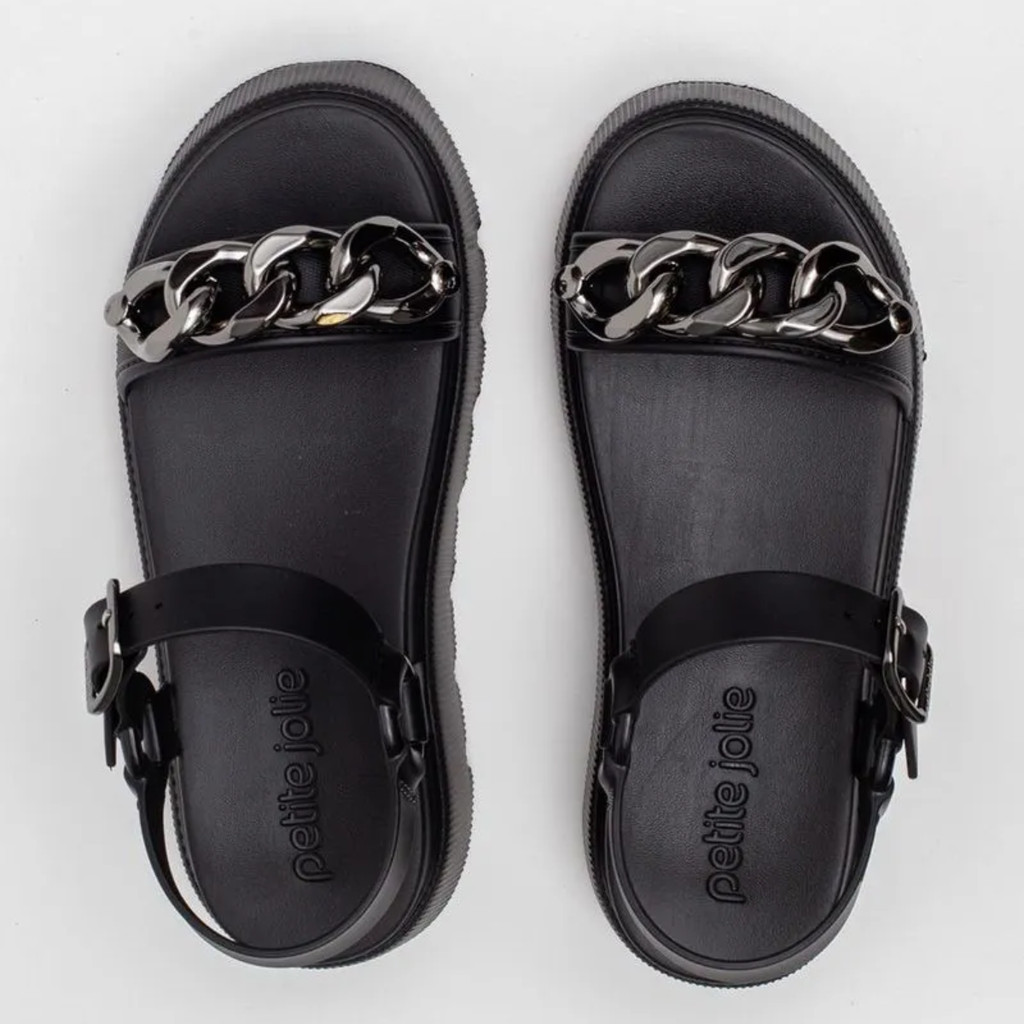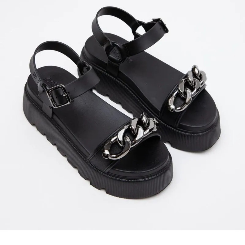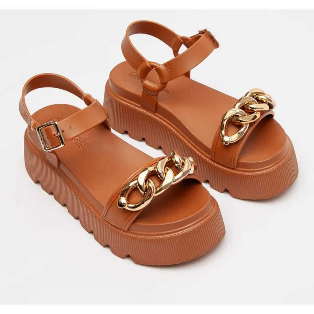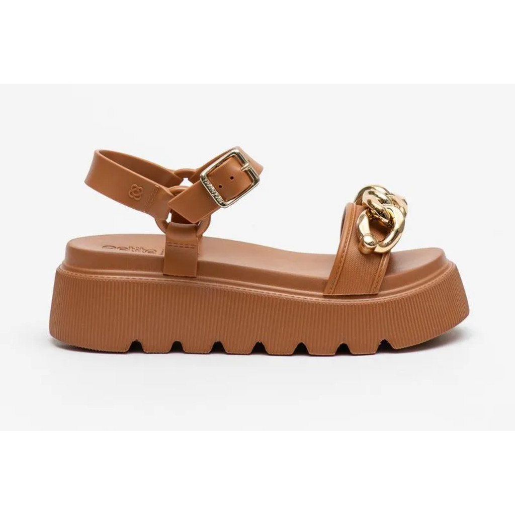 Sandália Feminina Petite Jolie Corrente Metalizada Plataforma Tratorada