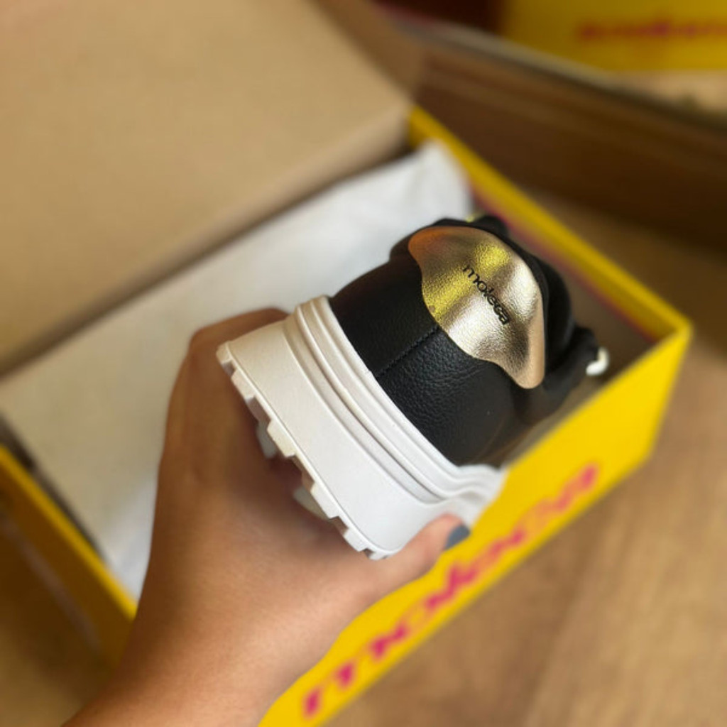 Tênis Feminino Moleca Plataforma Classic Detalhe Dourado Conforto
