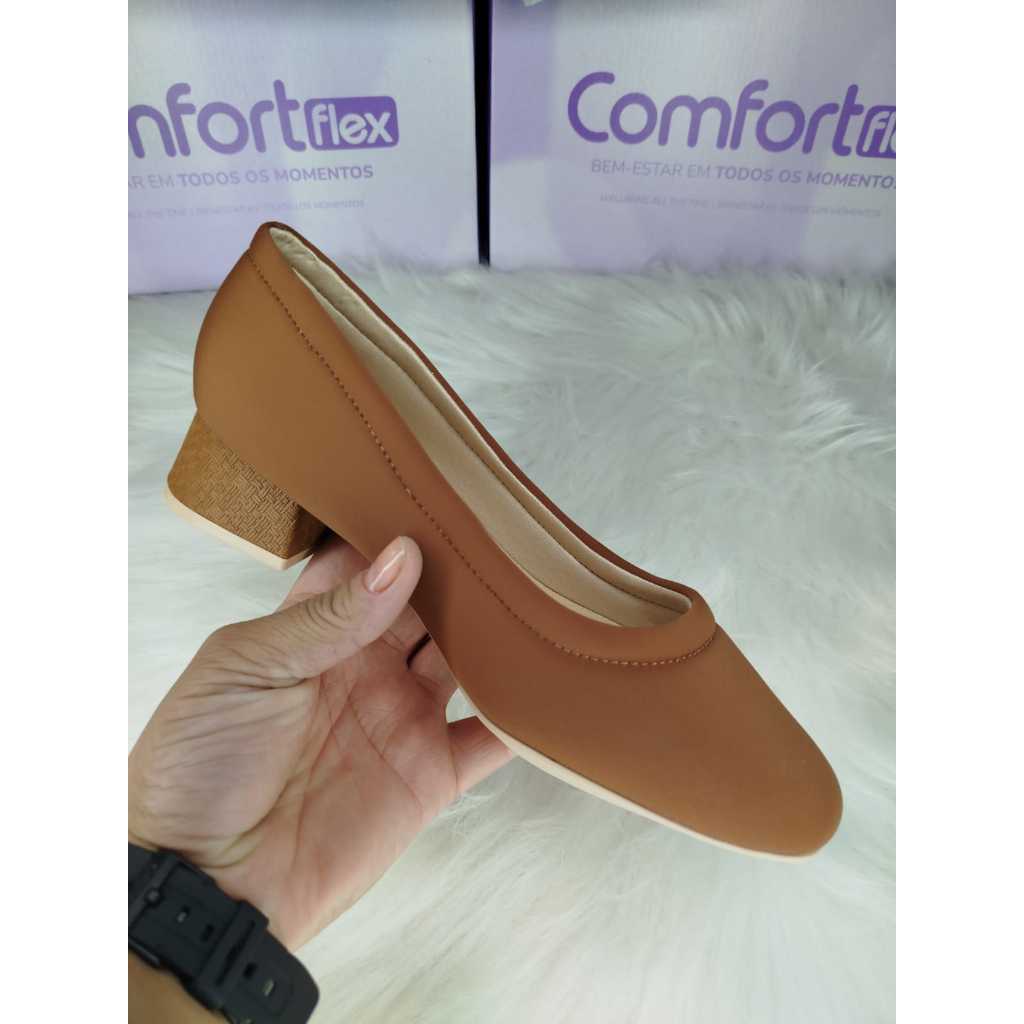 Sapato Scarpin Comfortflex Lycra Salto Baixo Grosso Trabalho Conforto