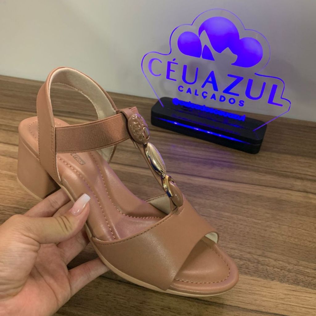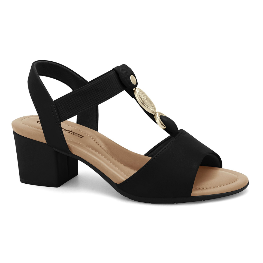 Sandália Comfortflex Salto Médio Elástico Conforto Pedraria Festa