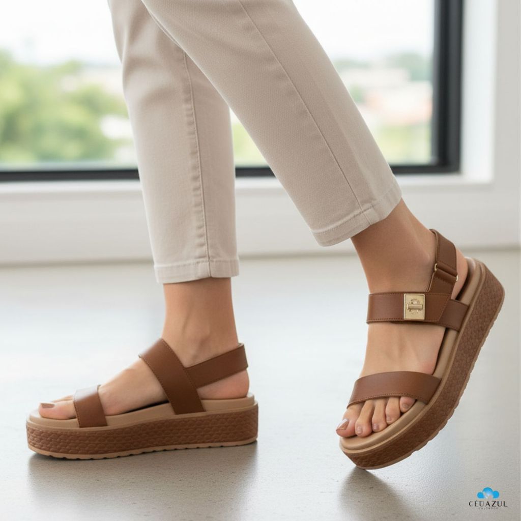 Sandália Ramarim Feminina Plataforma Flatform Conforto Brilho