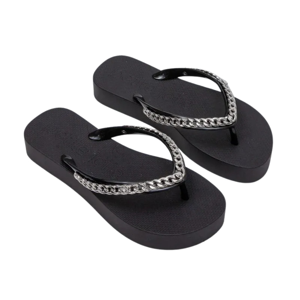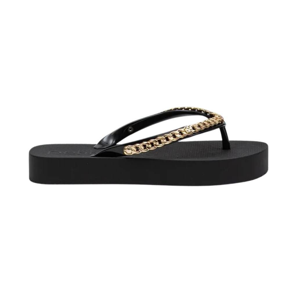 Chinelo Feminino Petite Jolie Plataforma Tira Corrente Metalizada Fresh Up PJ7592