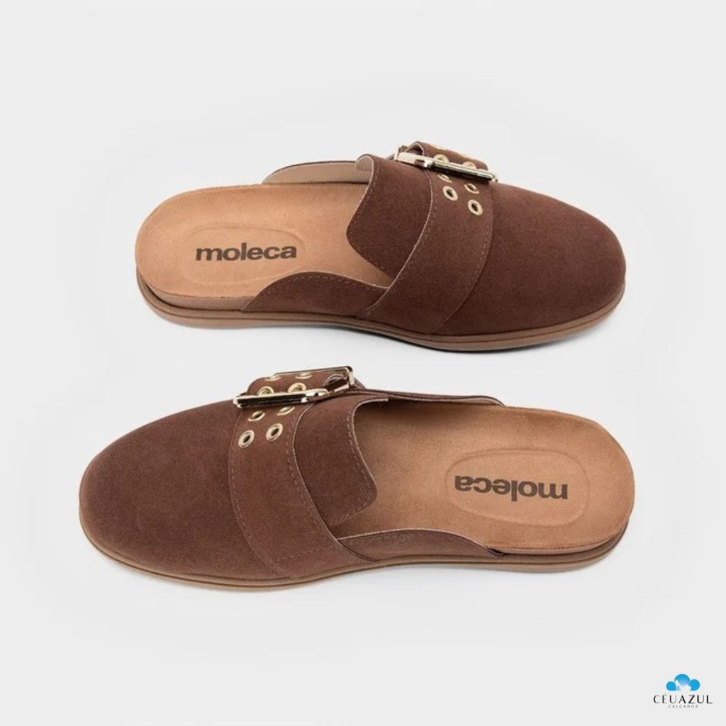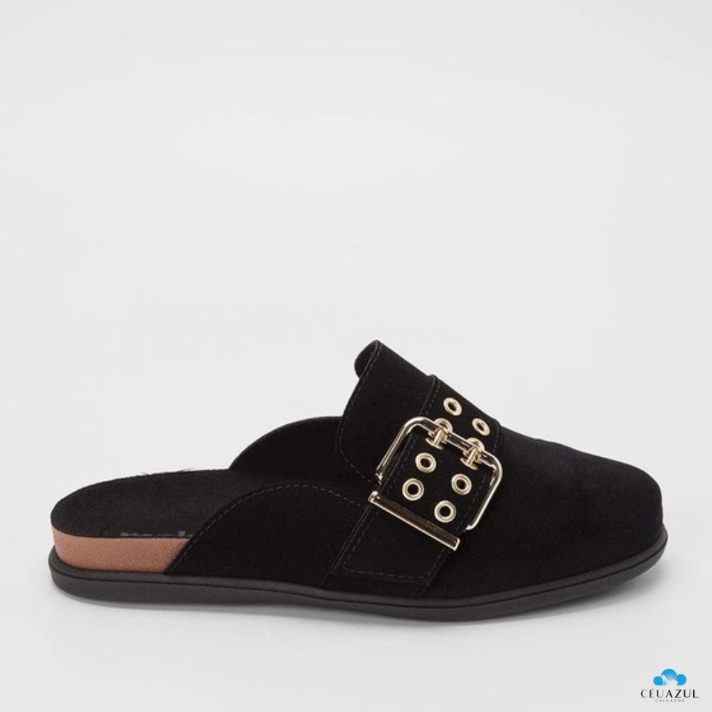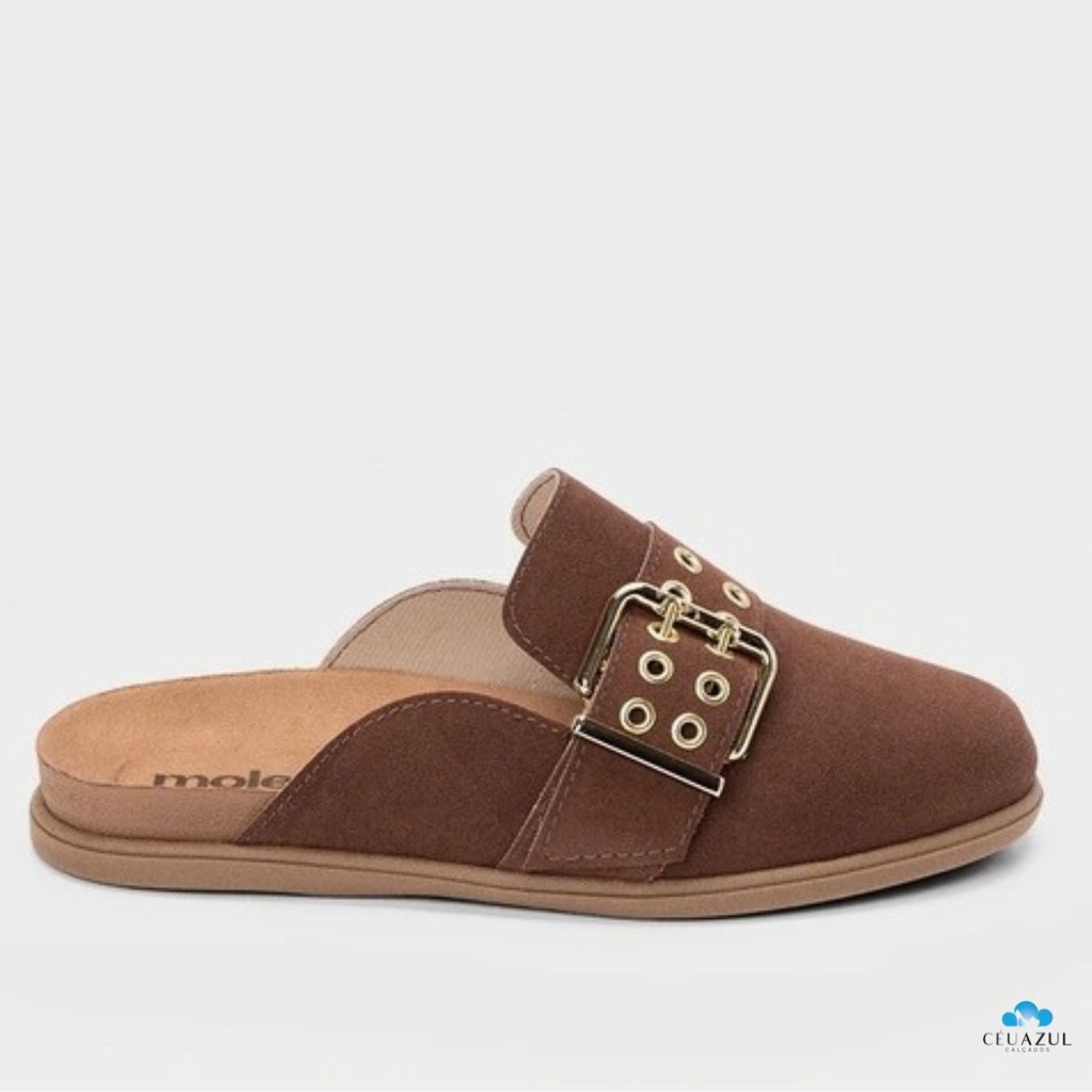 Mule Feminino Clog Moleca Camurça Fivela Dourada Trabalho Chique