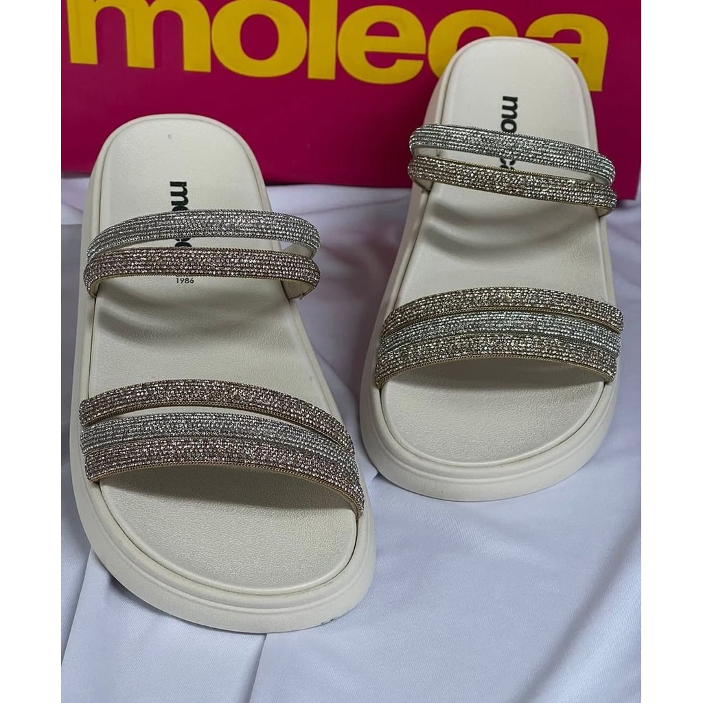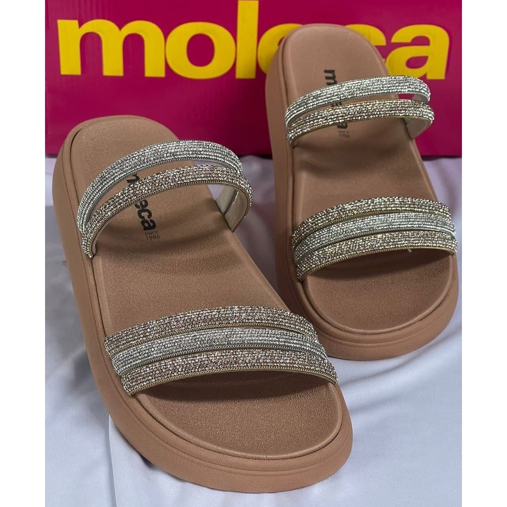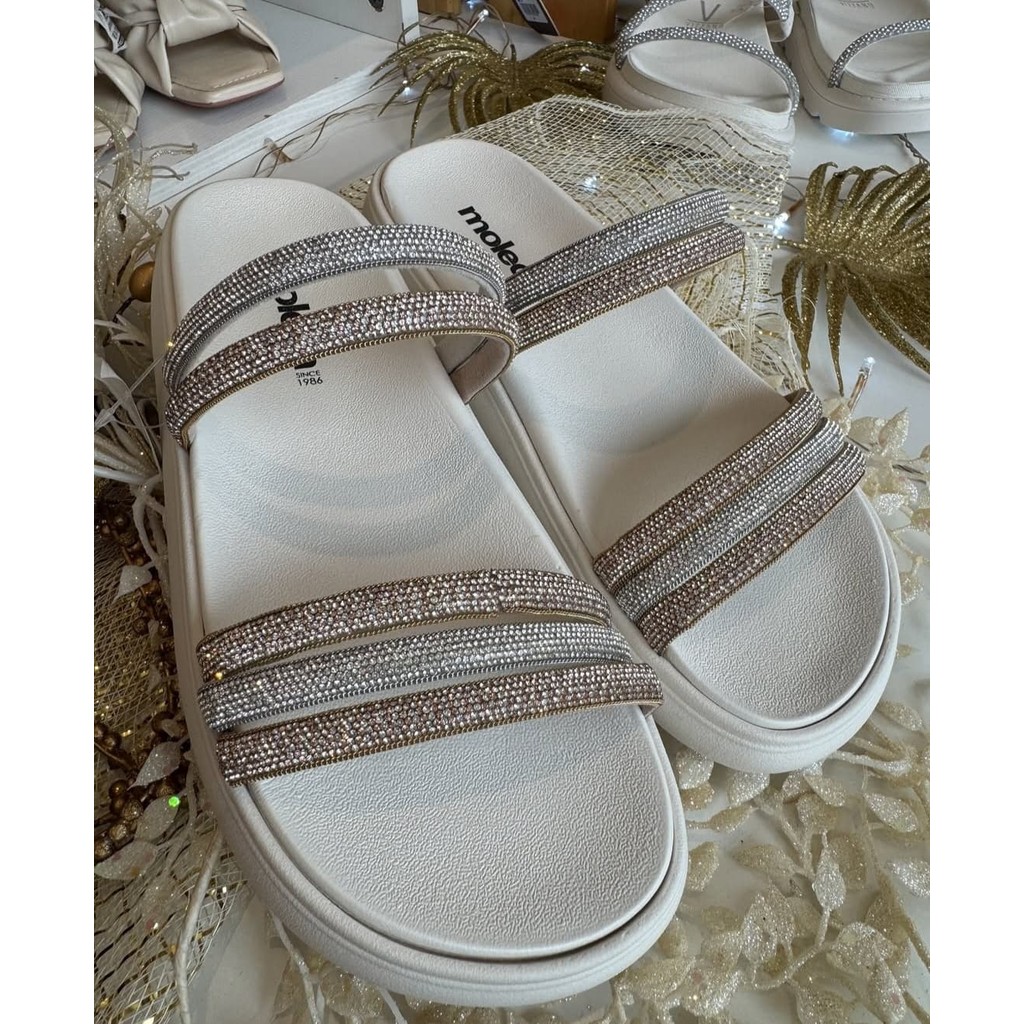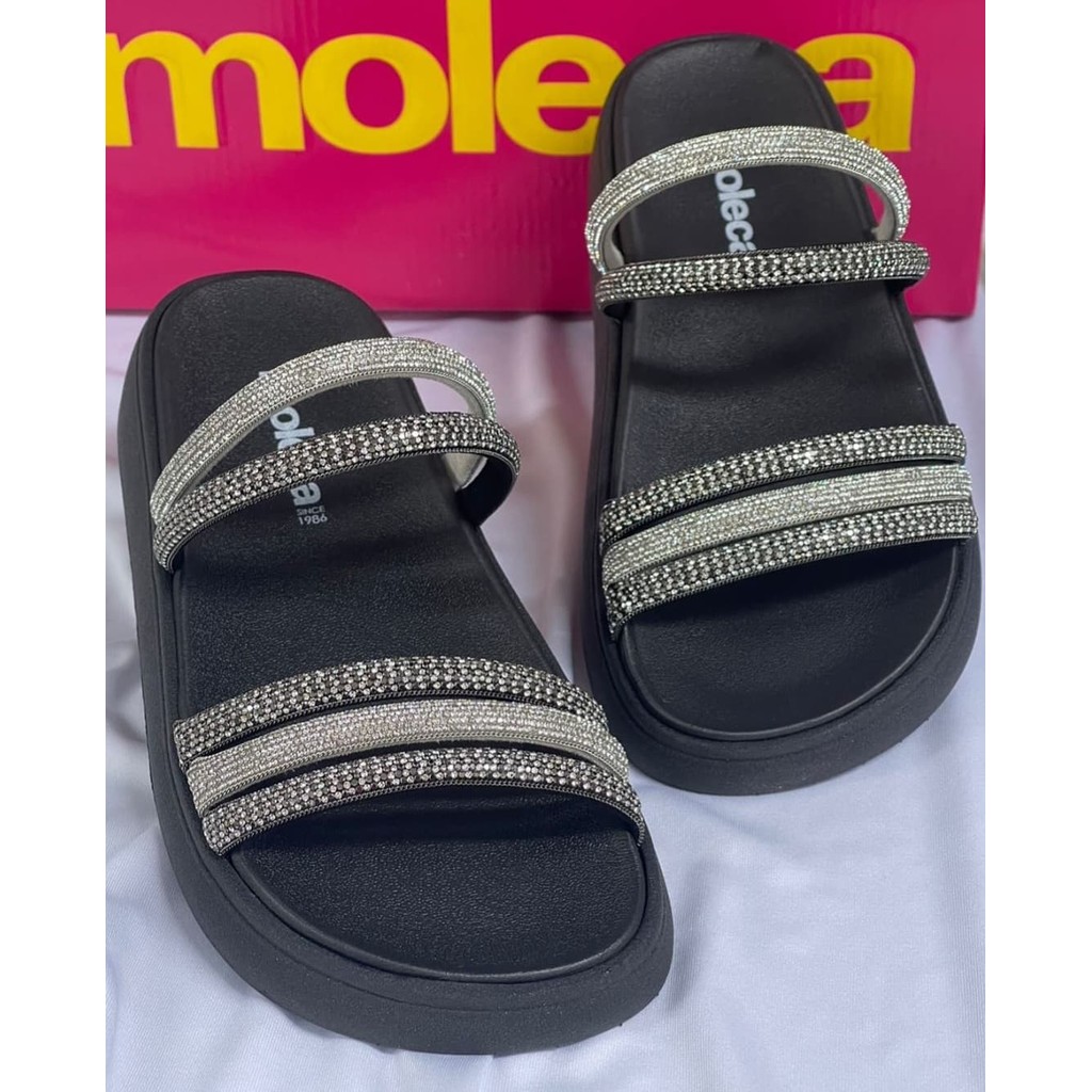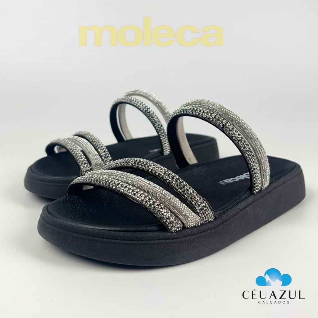 Sandália Papete Feminina Moleca Tira Valência Strass Brilho Moda Casual Conforto