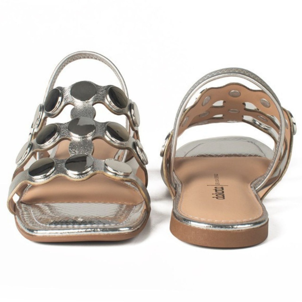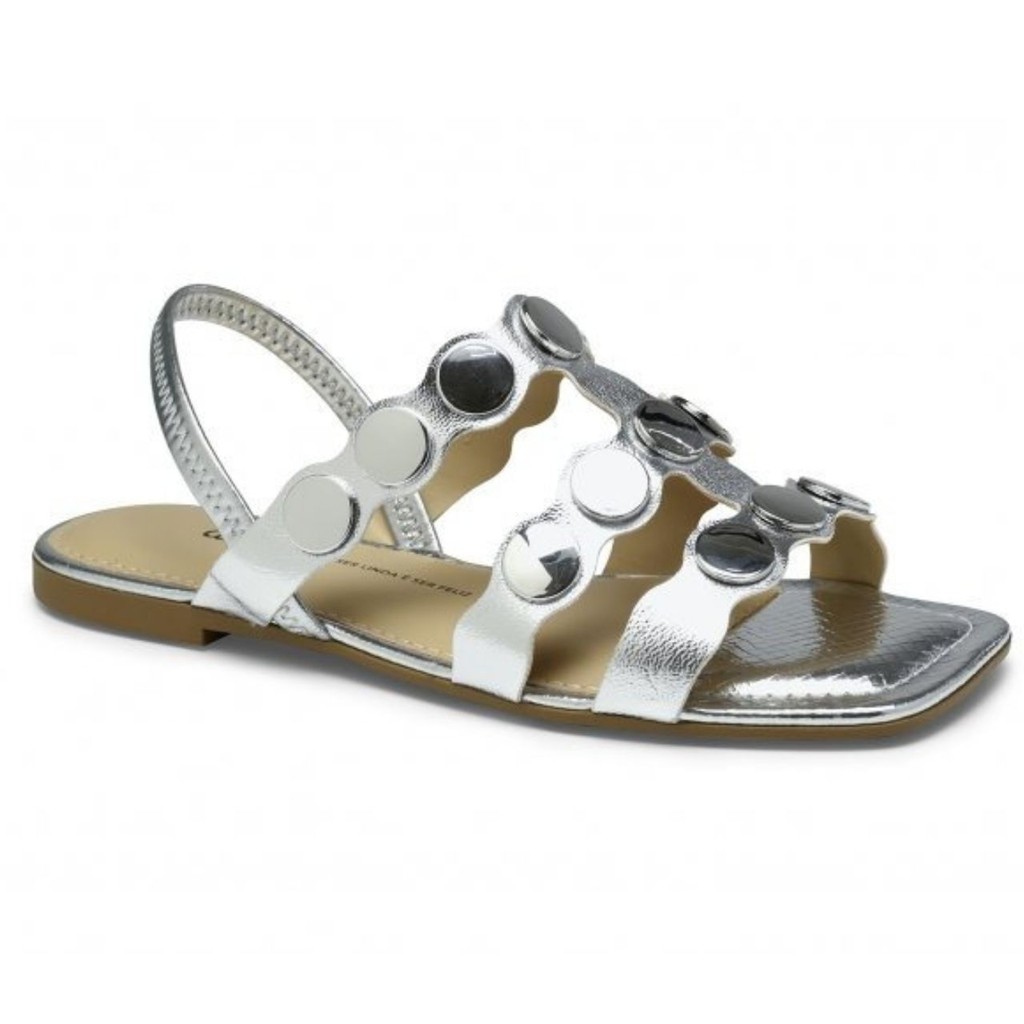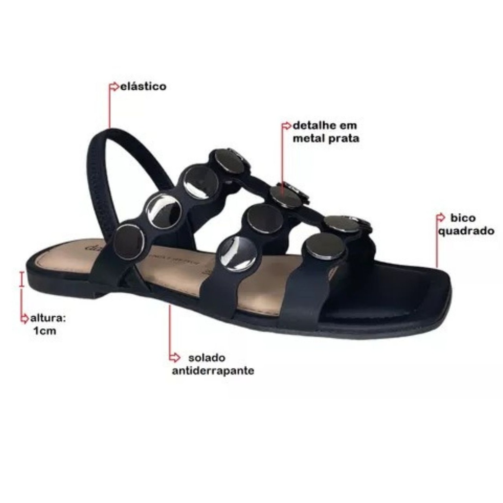 Sandália Feminina Dakota Rasteira Detalhe Metalizado Elástico Bico Quadrado Conforto