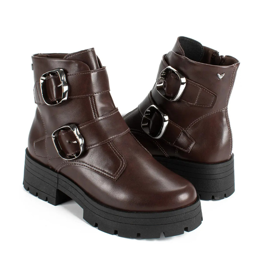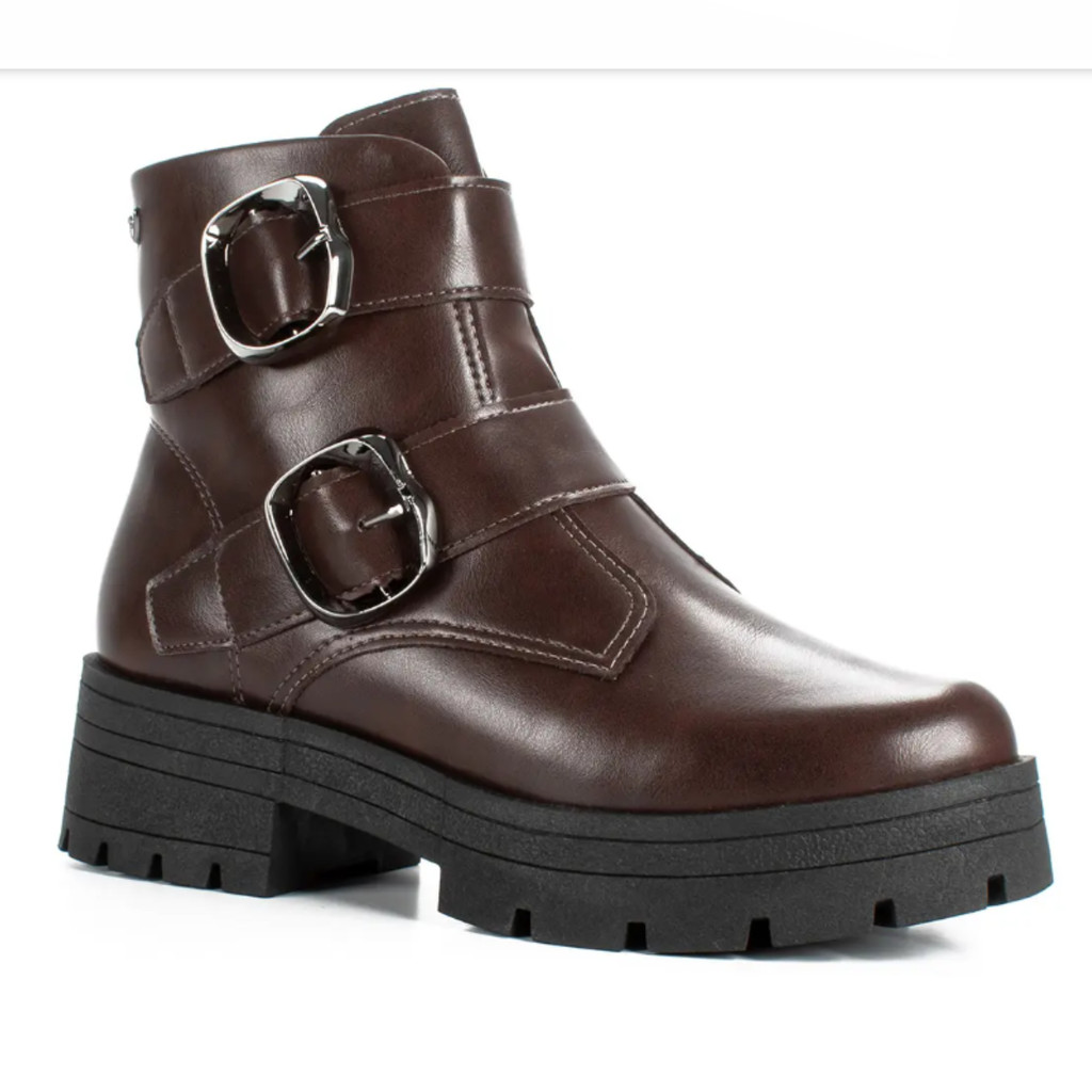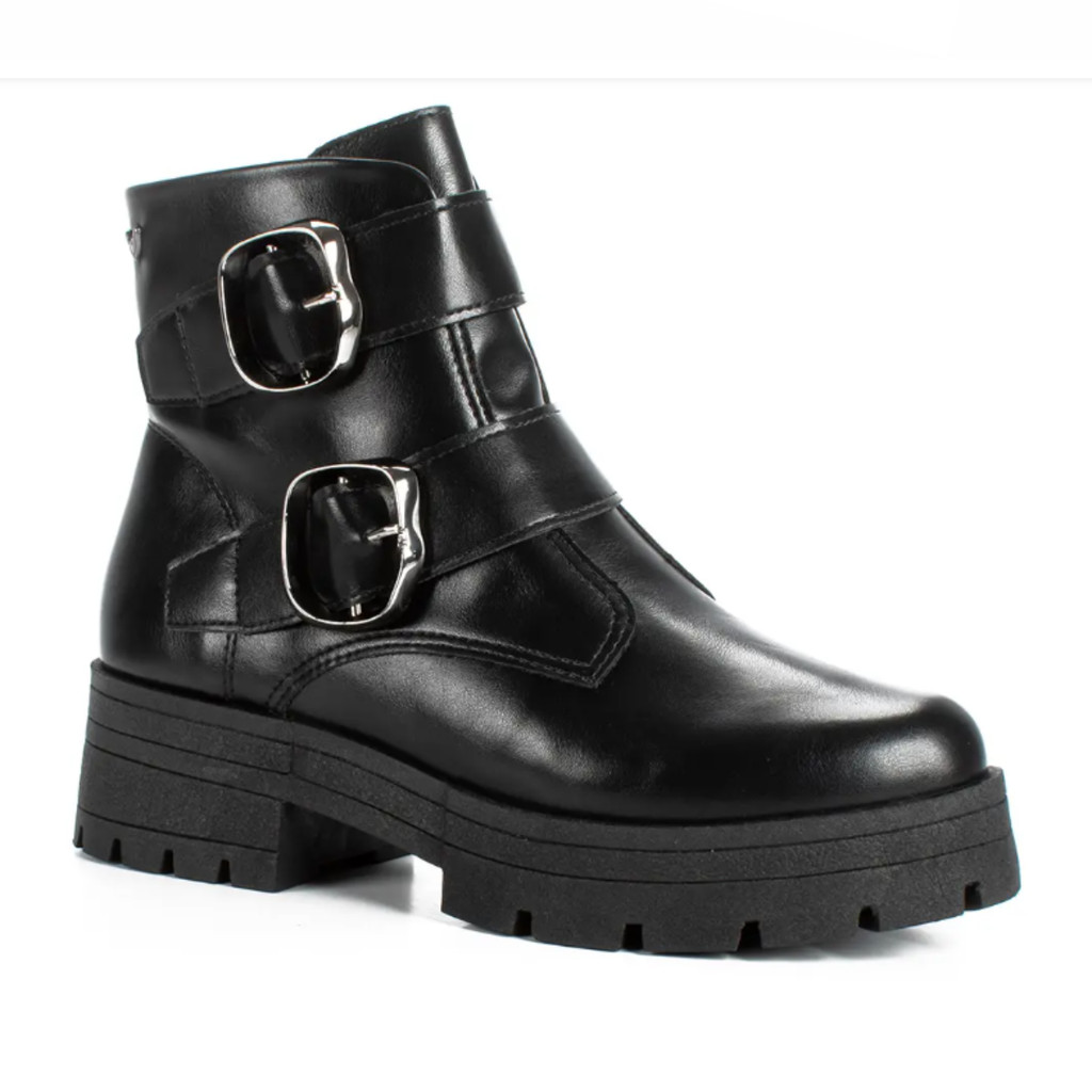 Bota Coturno Feminino Mississipi Preto Fivelas Solado Tratorado Design Moderno