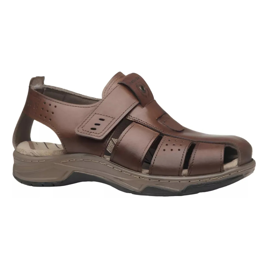 Sandália Fechada Masculina Pegada Couro Tira Autocolante Conforto Original 132256