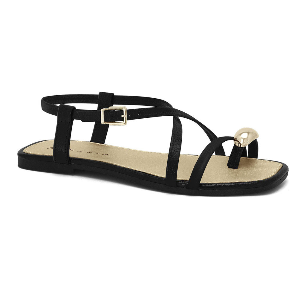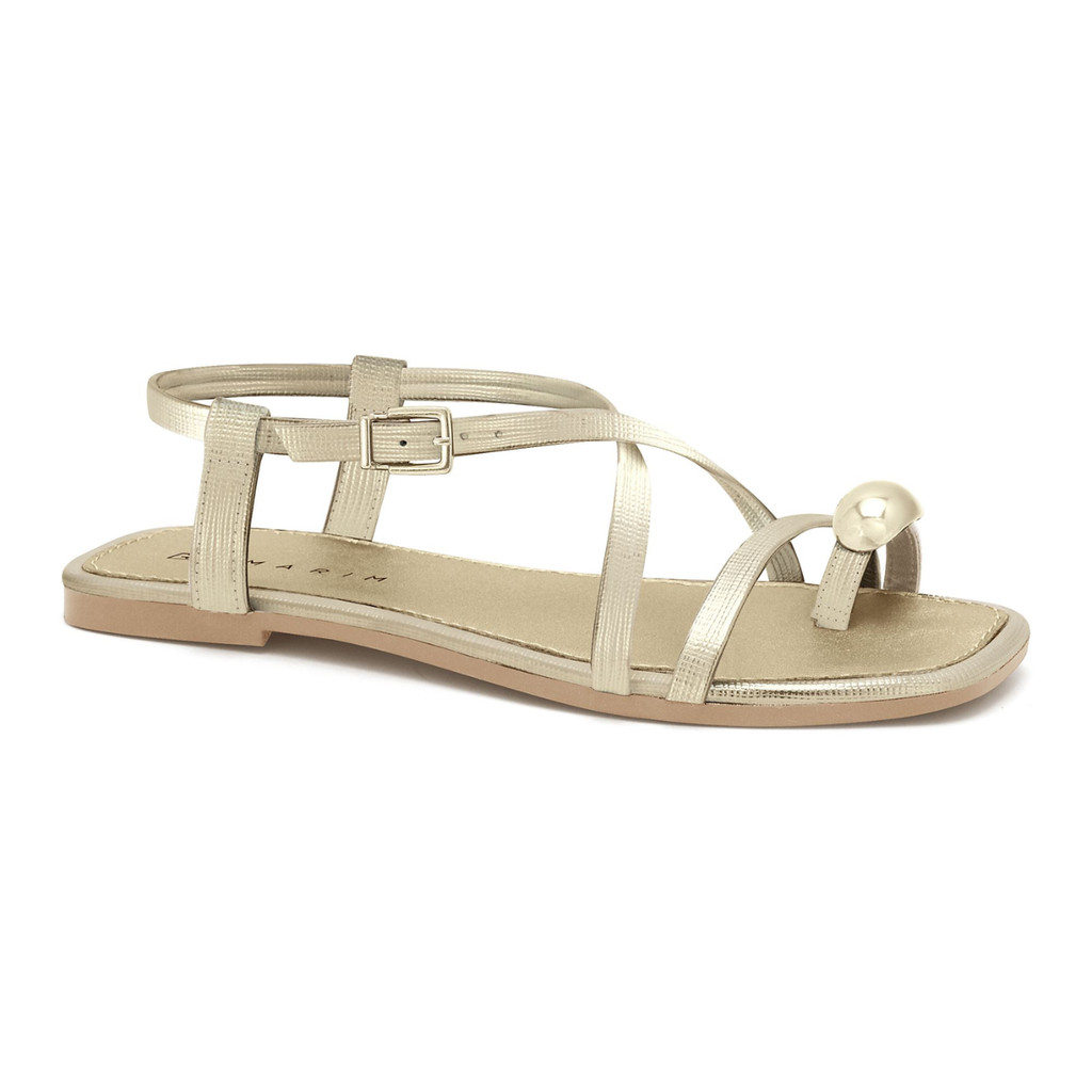 Rasteira Ramarim Feminina Dedo Detalhe Metálico Dourado