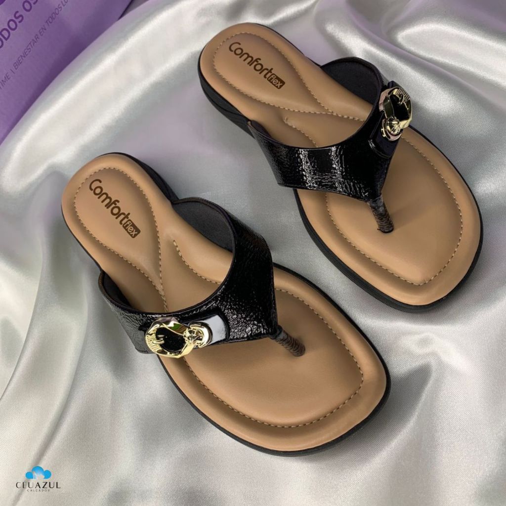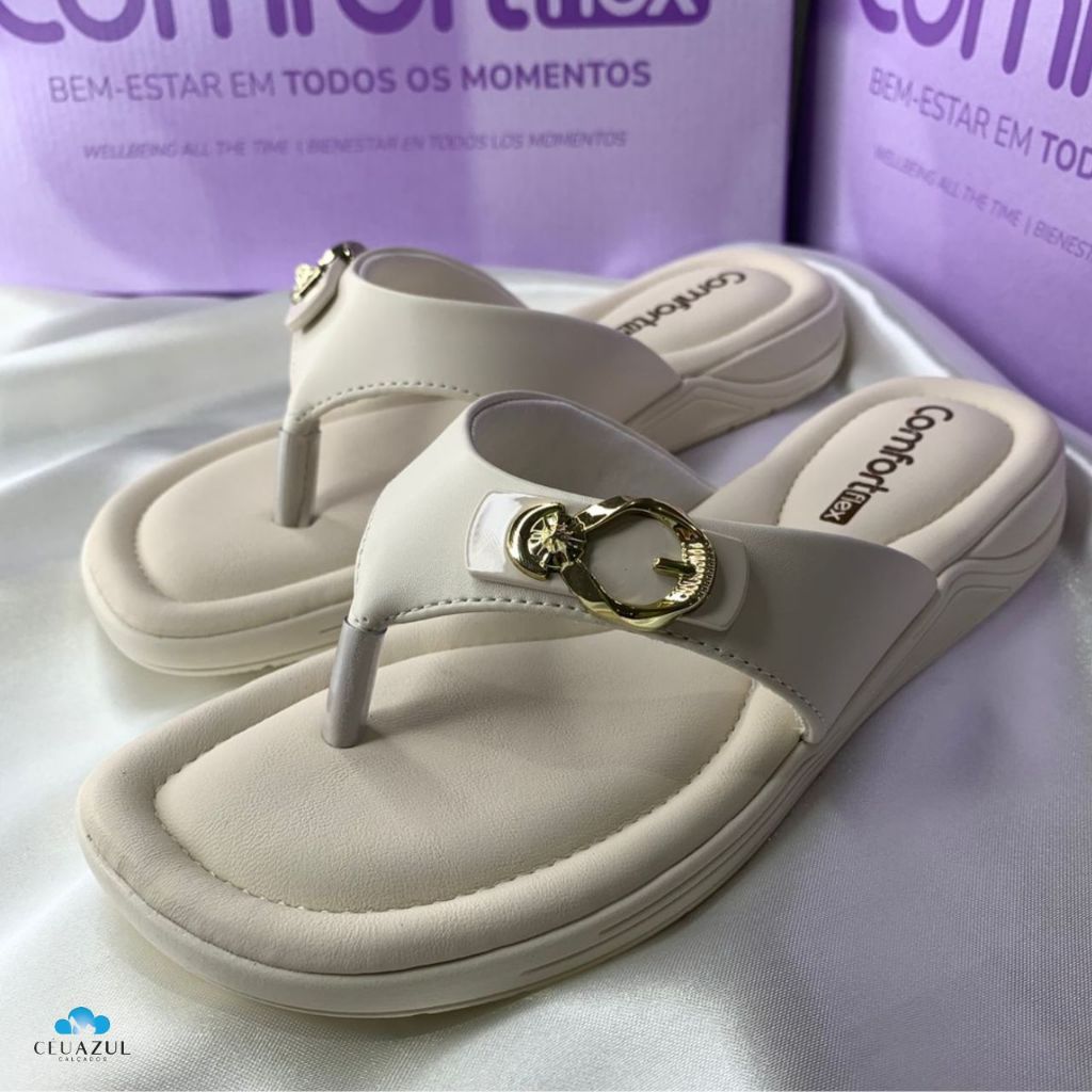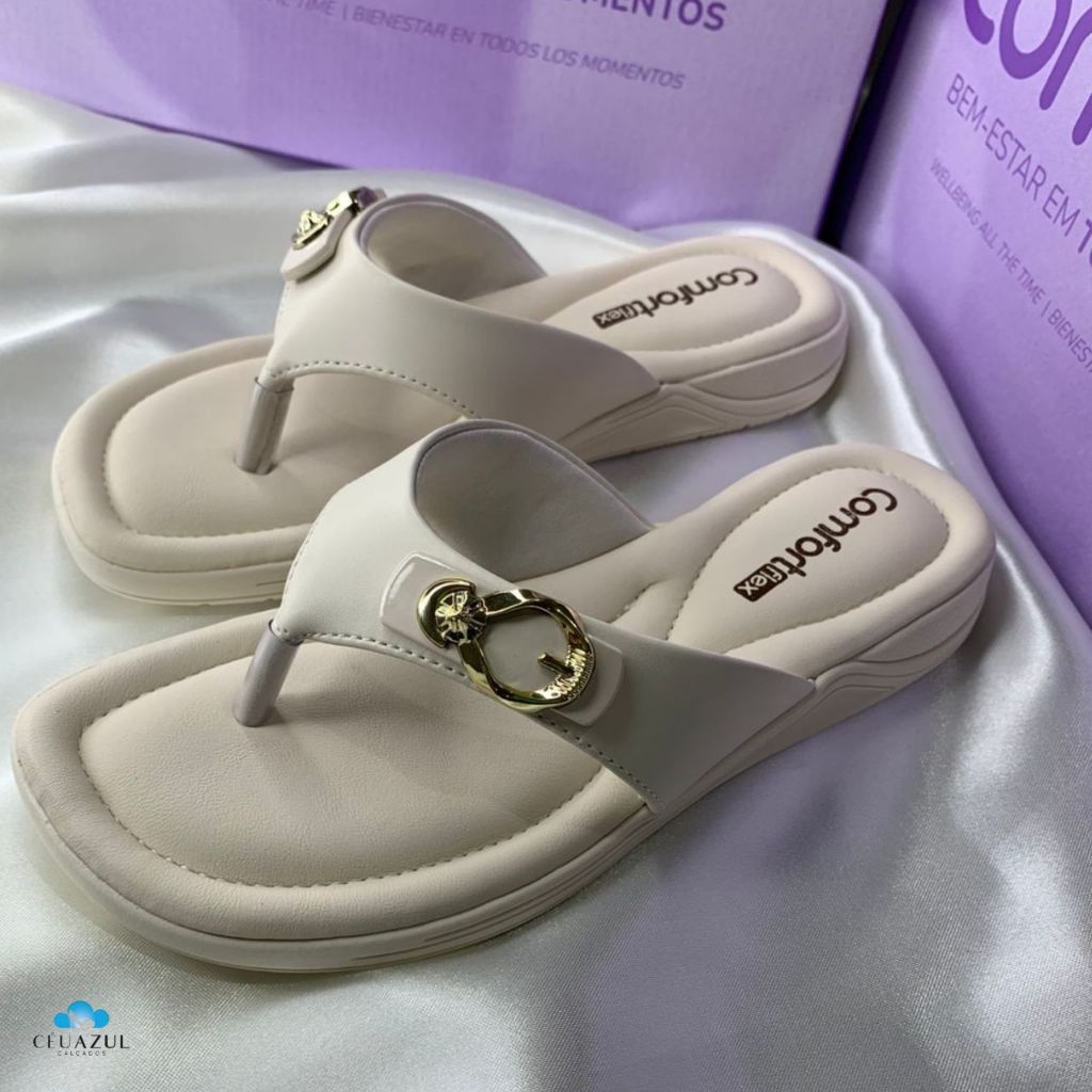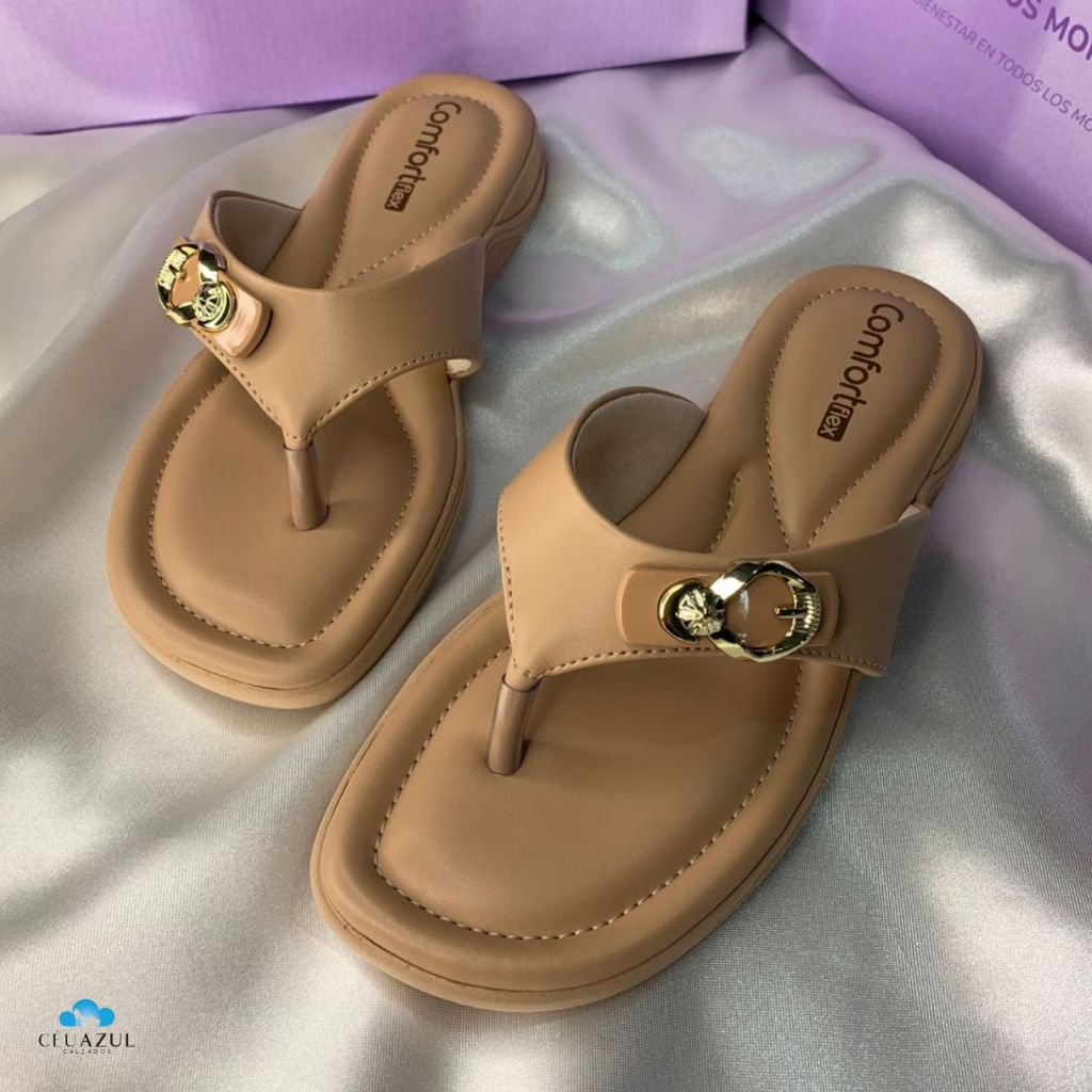 Chinelo Feminino Comfortflex Detalhe Fivela Dourada