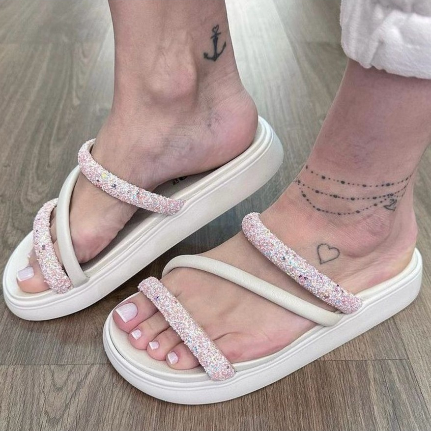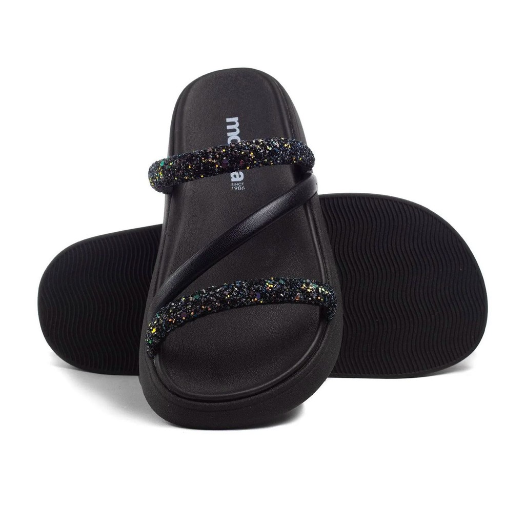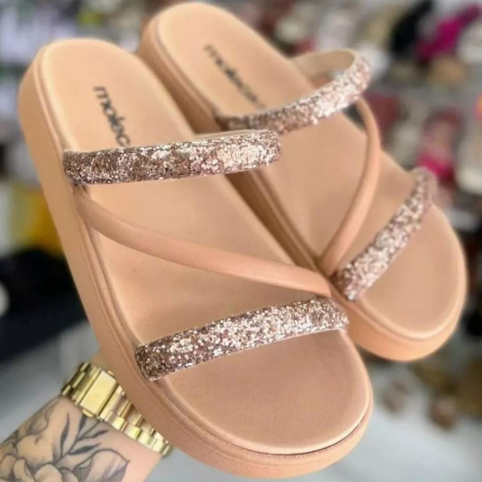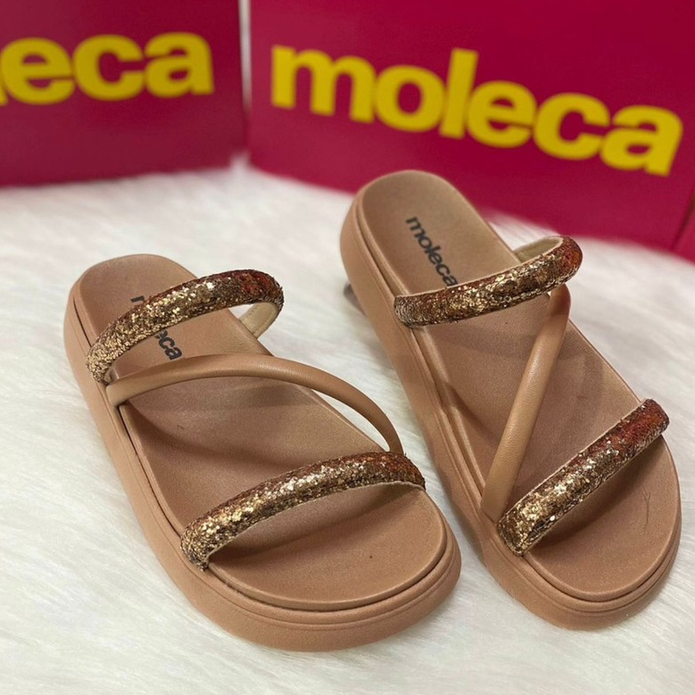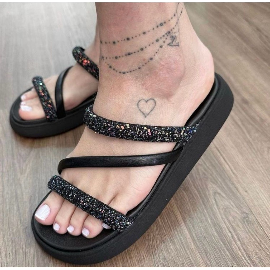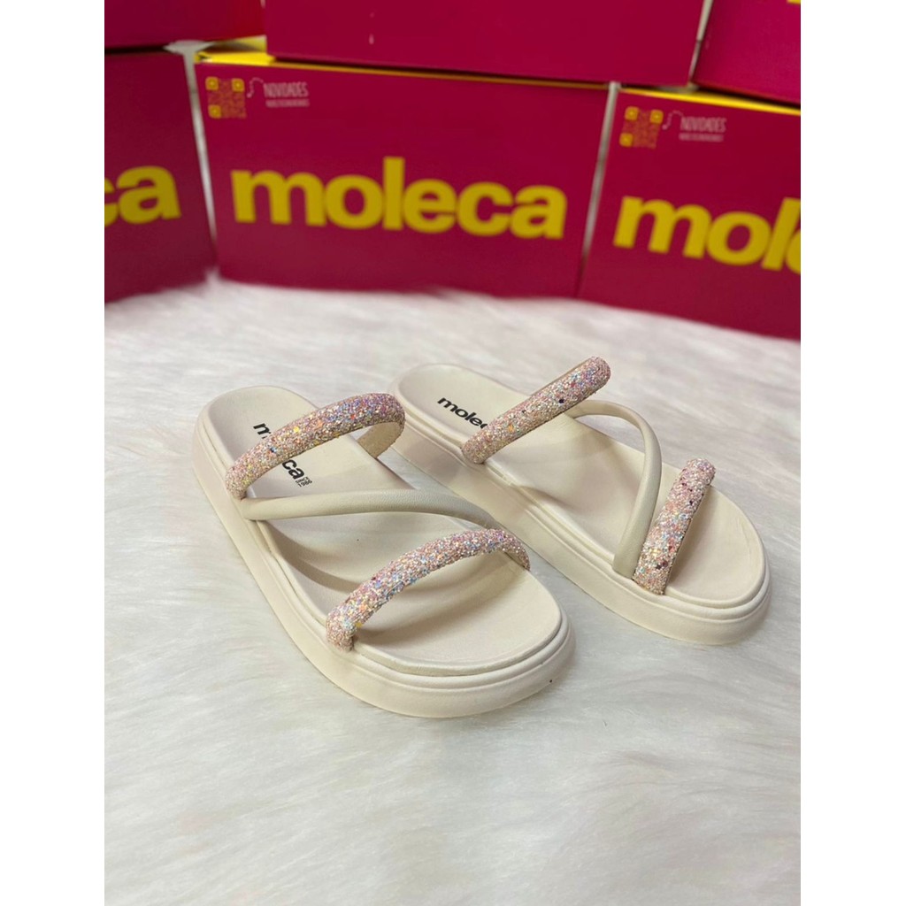 Sandália feminina Papete Virginia Glitter Strass Brilho Birken Moleca Original