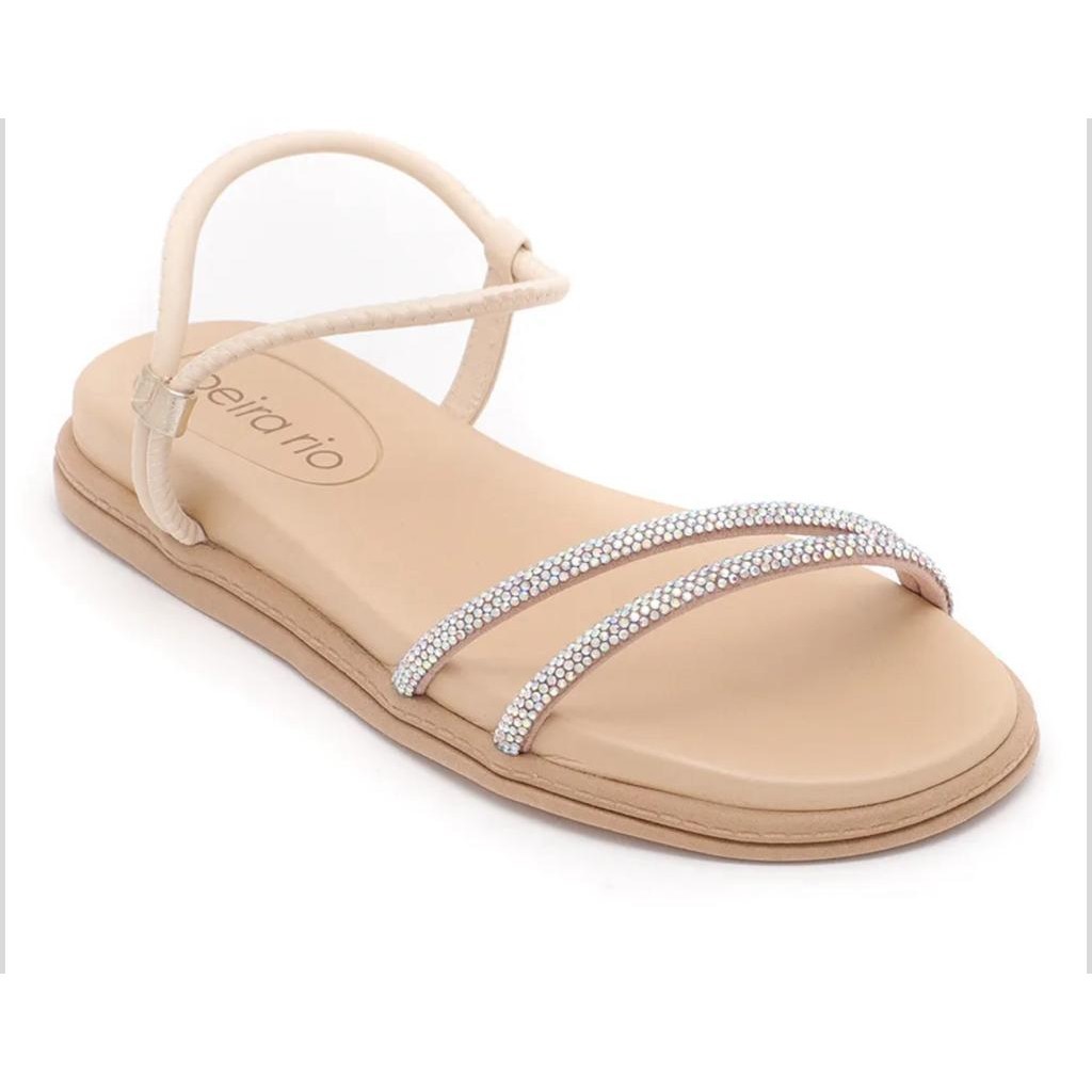 Sandalia Feminina Beira Rio Rasteira Strass Brilho Estilo Conforto Original