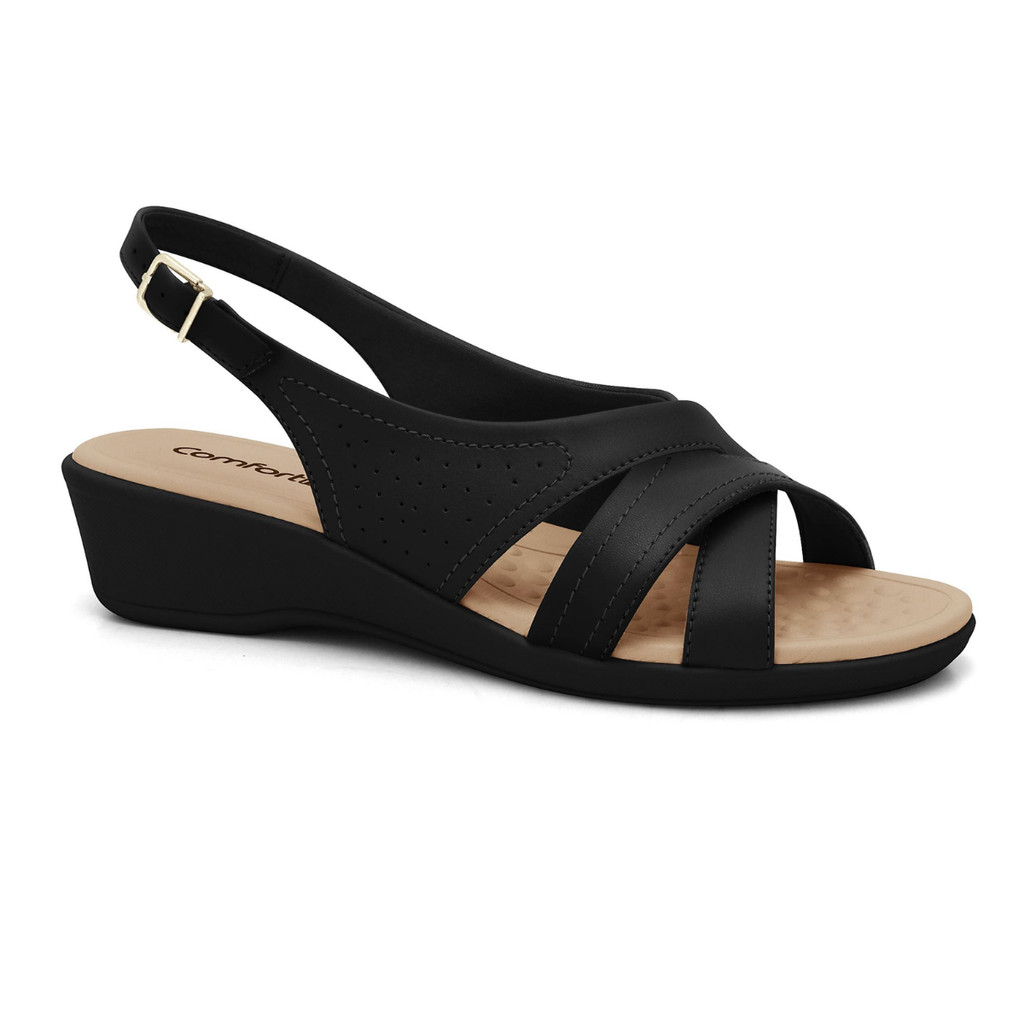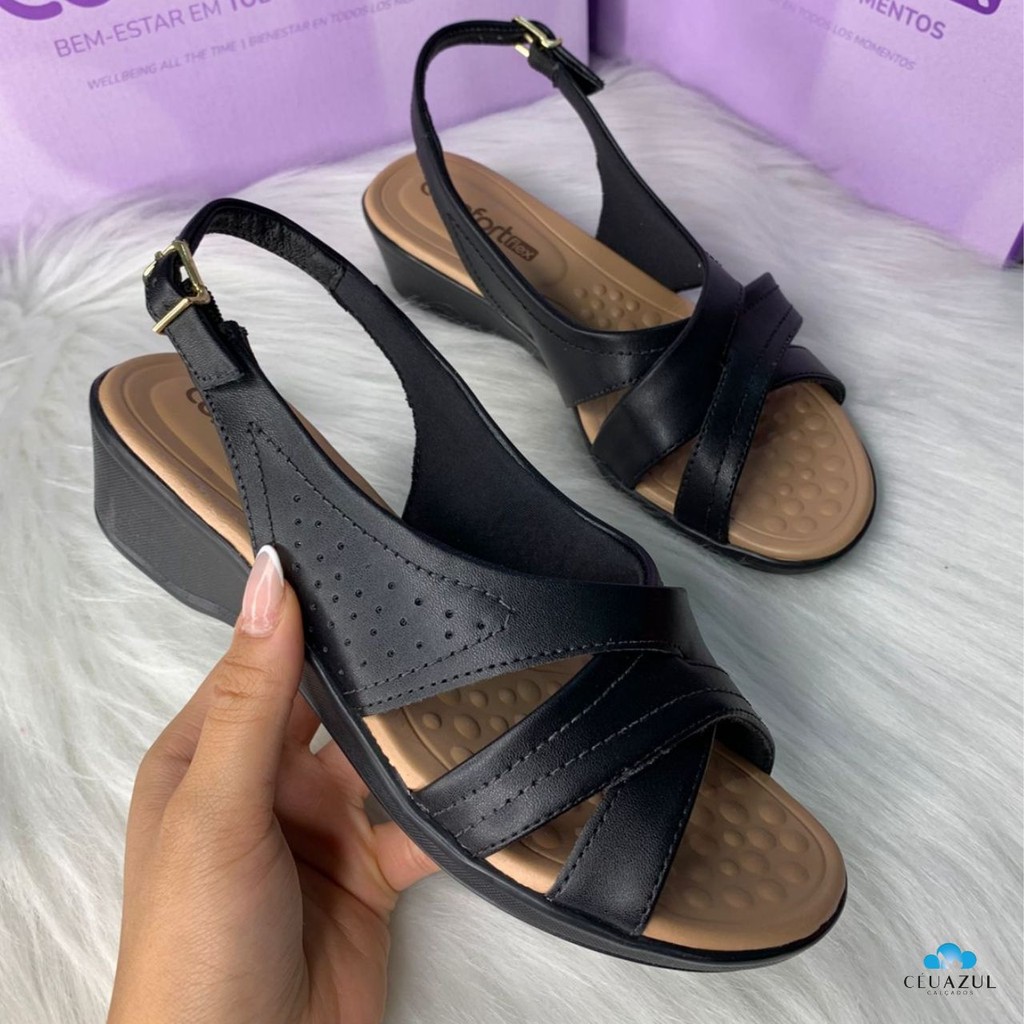 Sandália Feminina Comfortflex Anabela Salto Baixo Conforto Dia a Dia