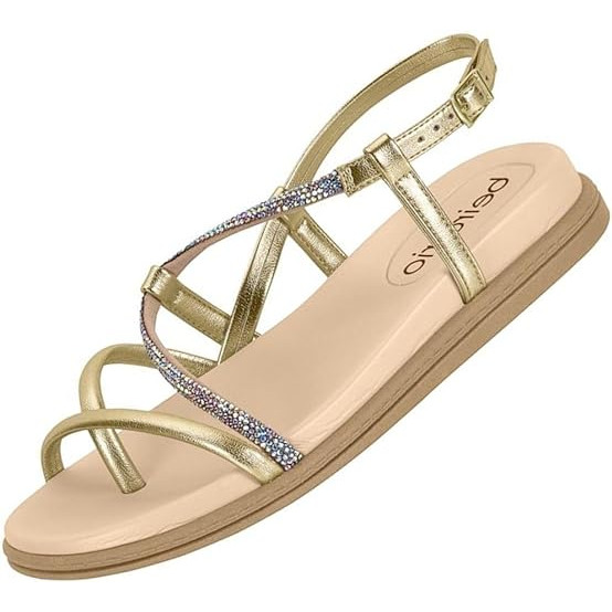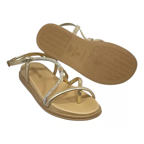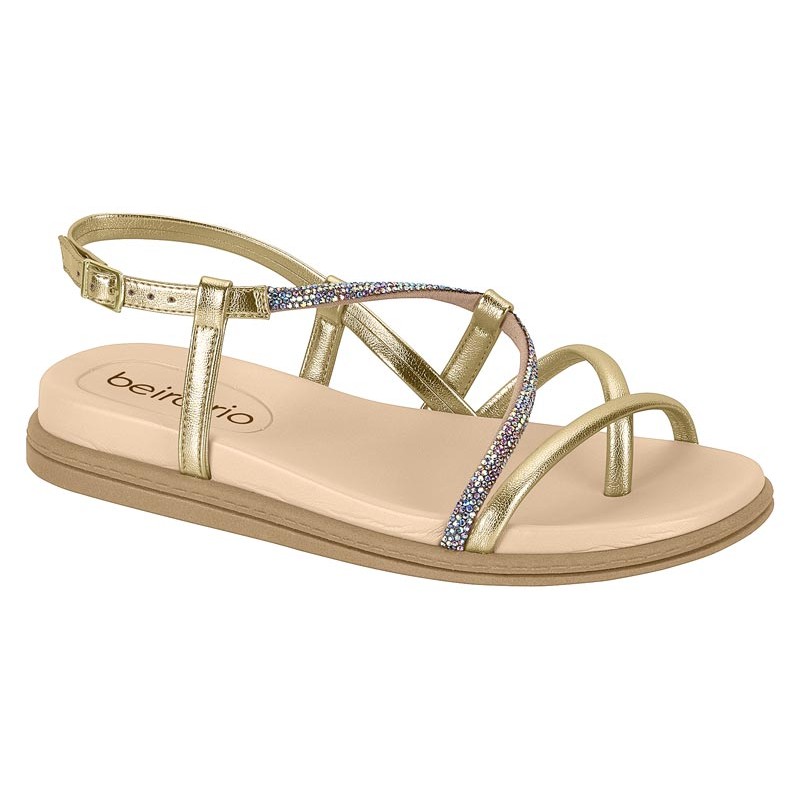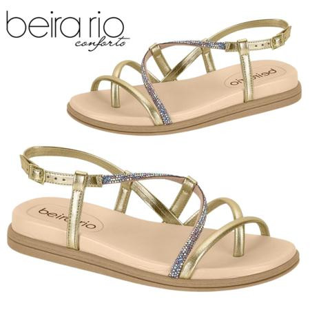 Sandália Papete Feminina Beira Rio Tira Strass Brilho Metalizado Conforto