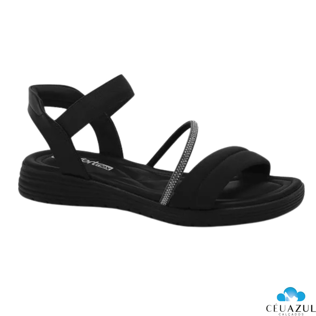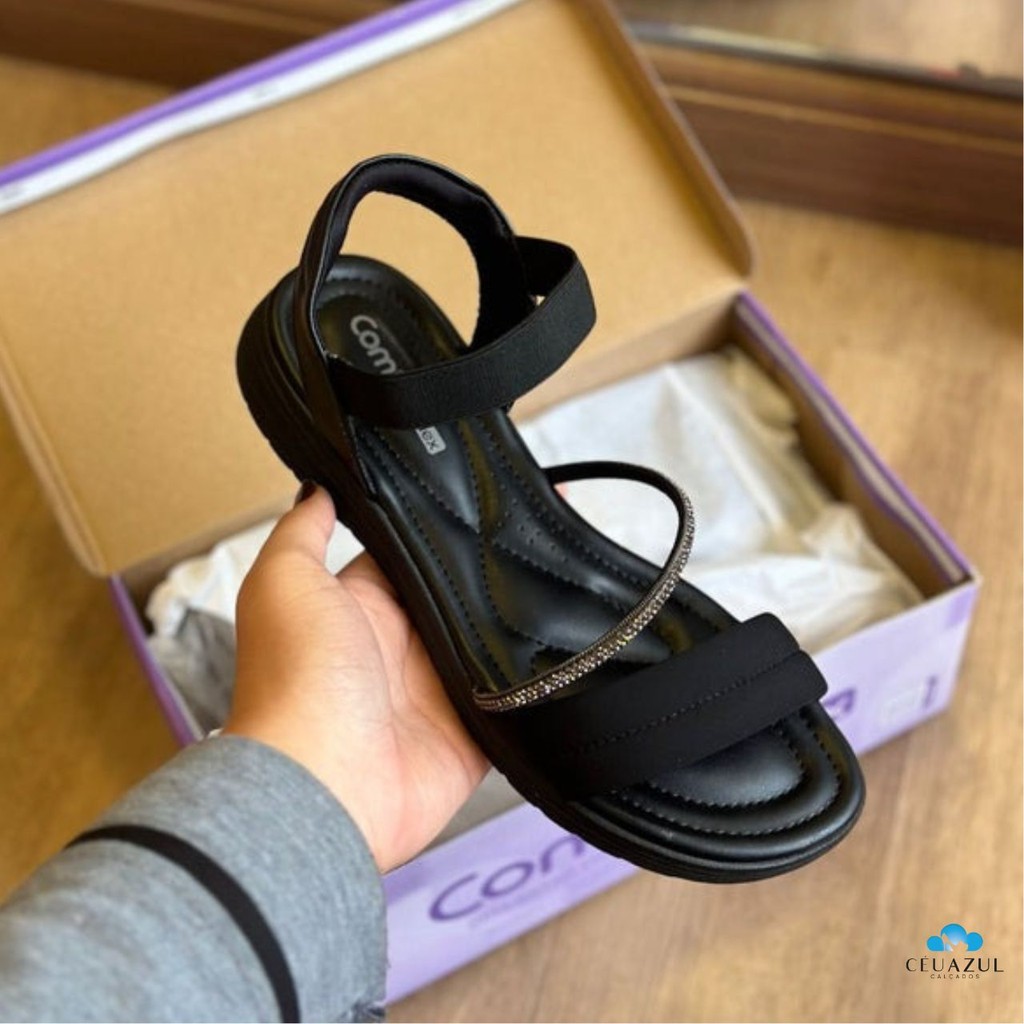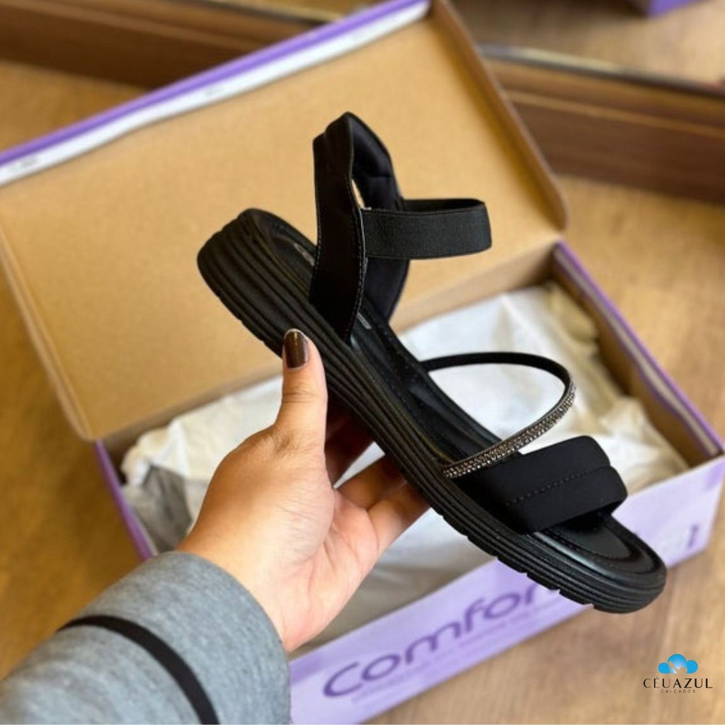 Sandália Feminina Comfortflex Rasteira Ortopédica Elástico Elegante Strass Brilho Conforto