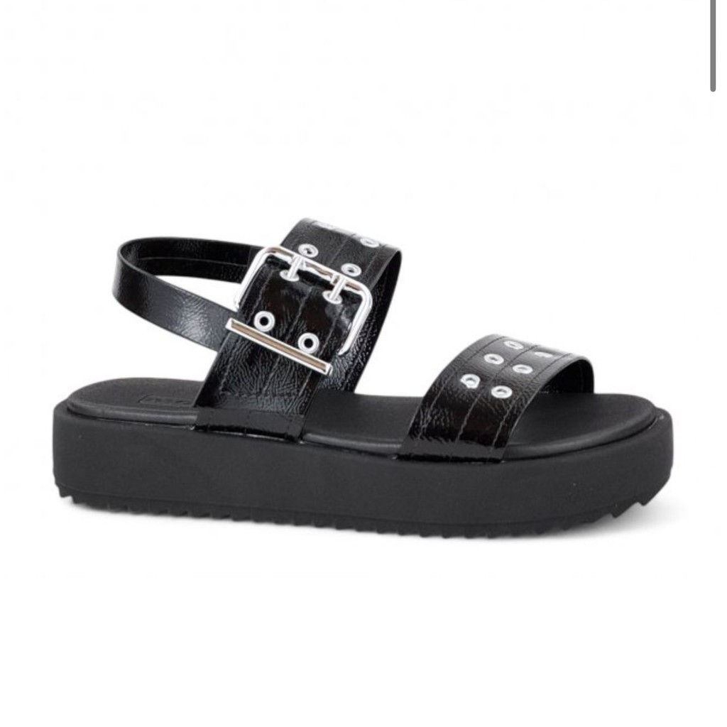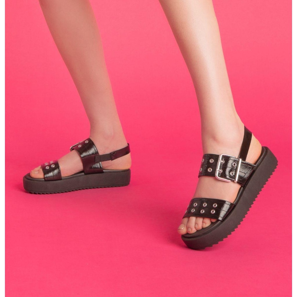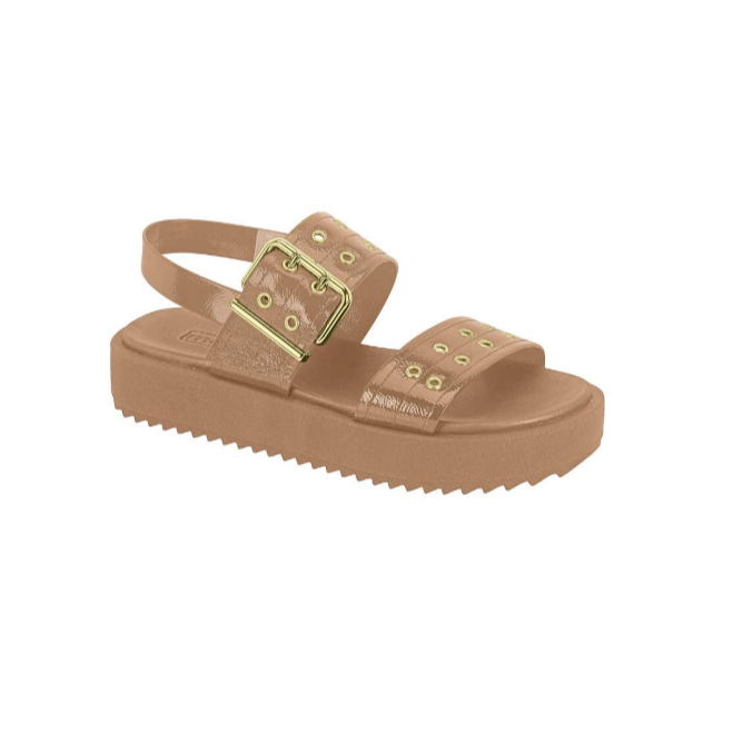 Sandália Feminina Moleca Aplicações Metálicas Plataforma Verniz Estilosa