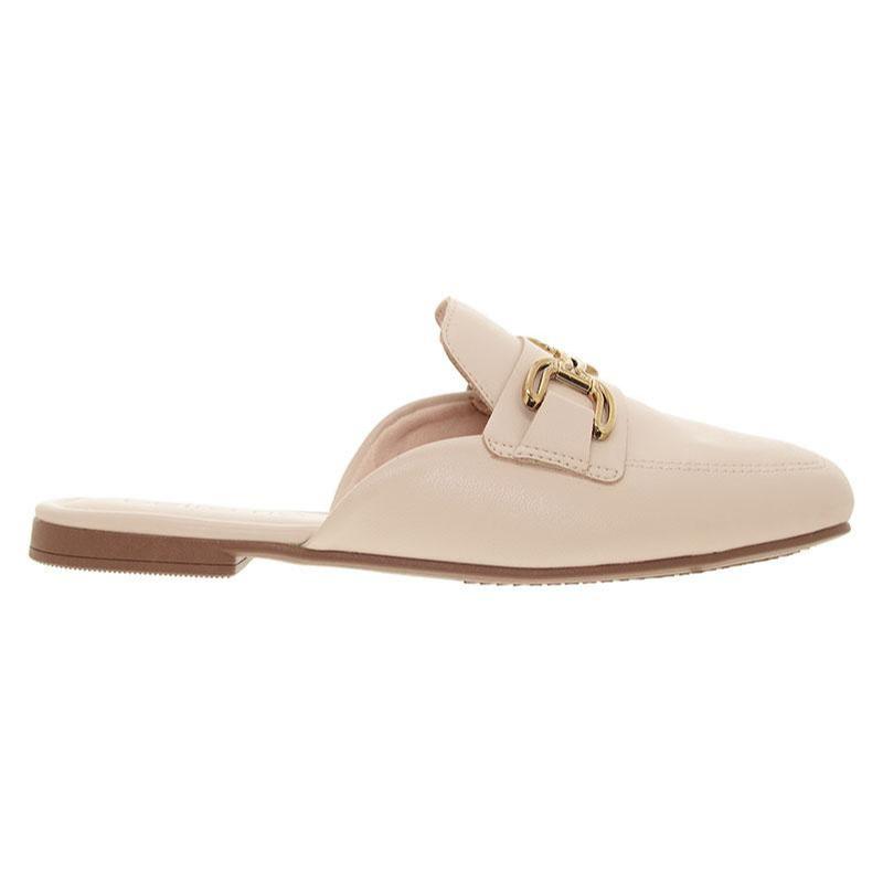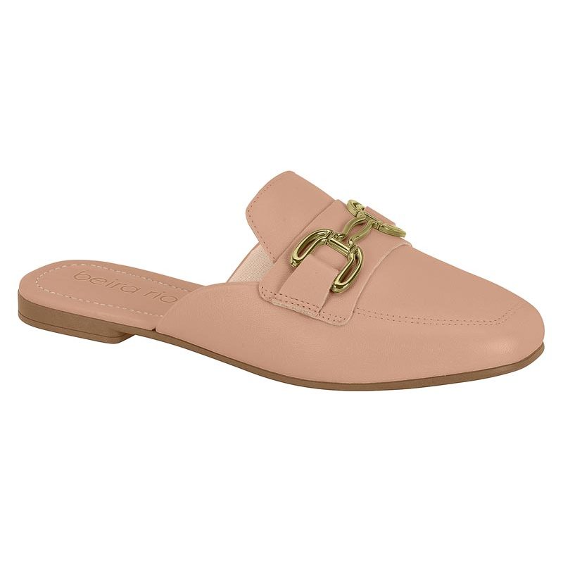 Mule Feminino Beira Rio Bico Quadrado Trabalho Chique Conforto Fivela Dourada