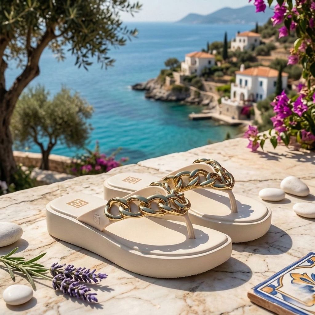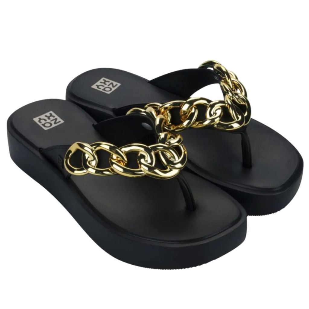 Chinelo Feminino Zaxy Link Corrente Dourada Original