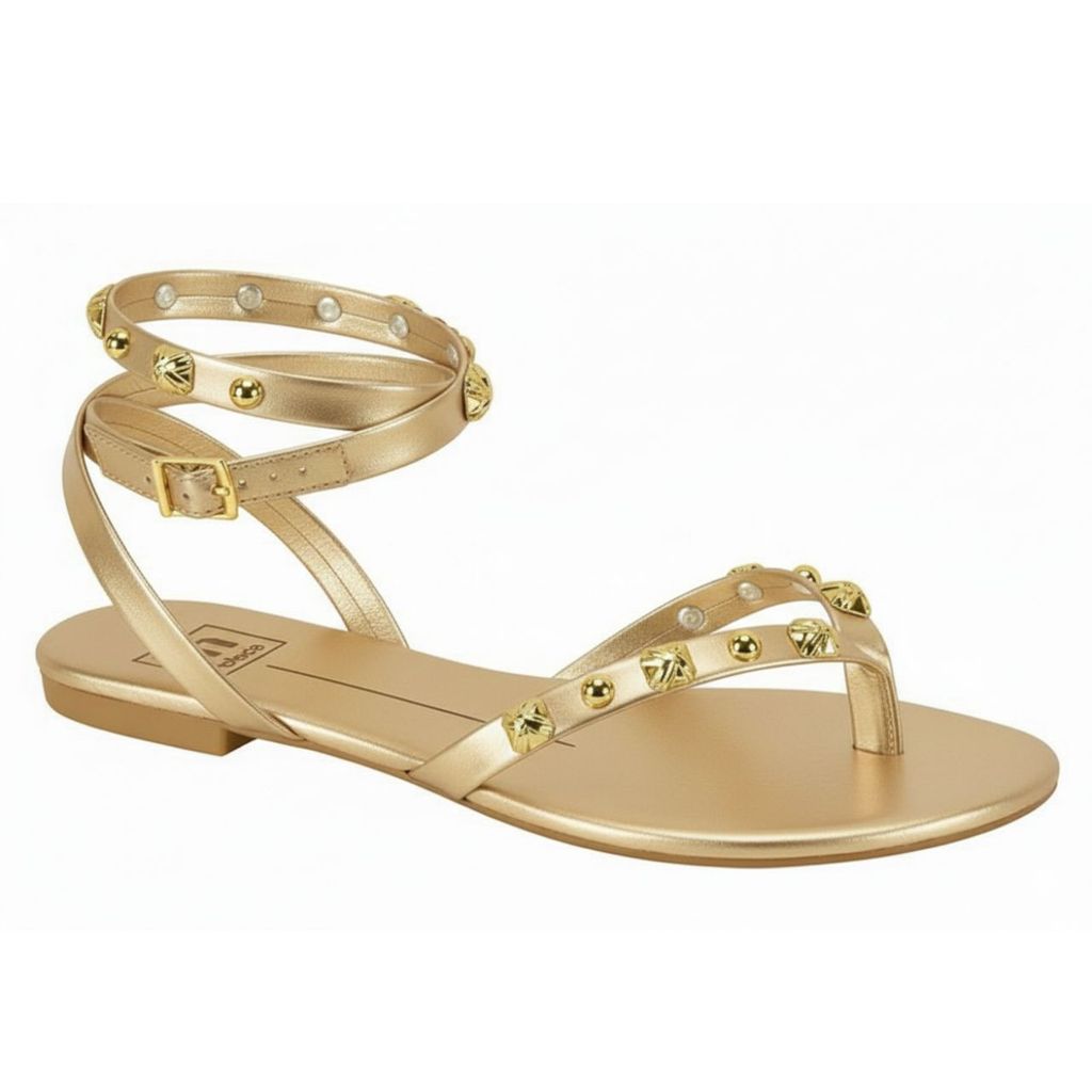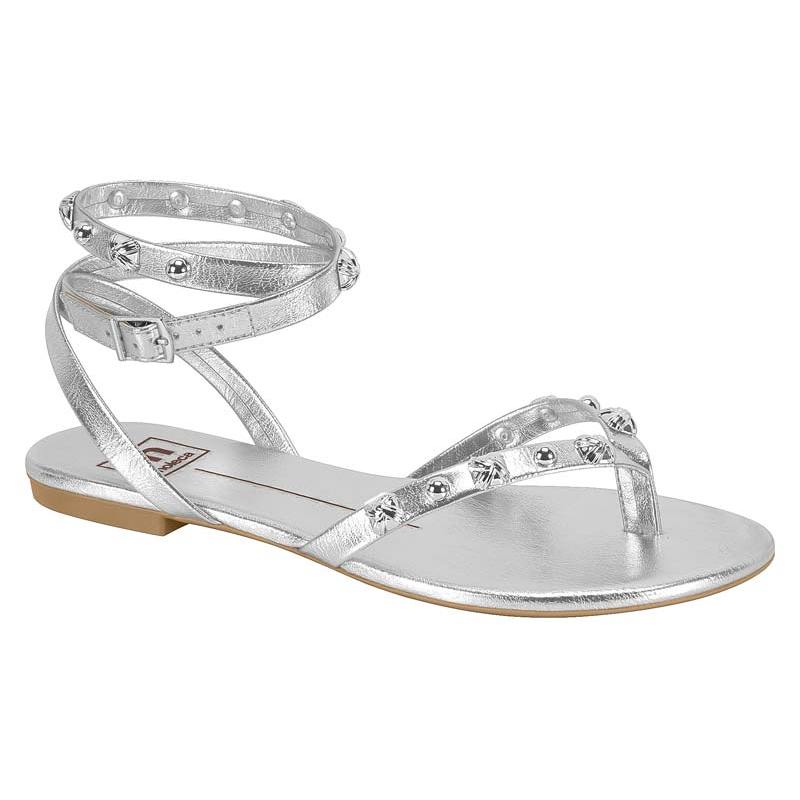 Sandália Rasteira Moleca Feminina Metalizada Pedrarias Brilho