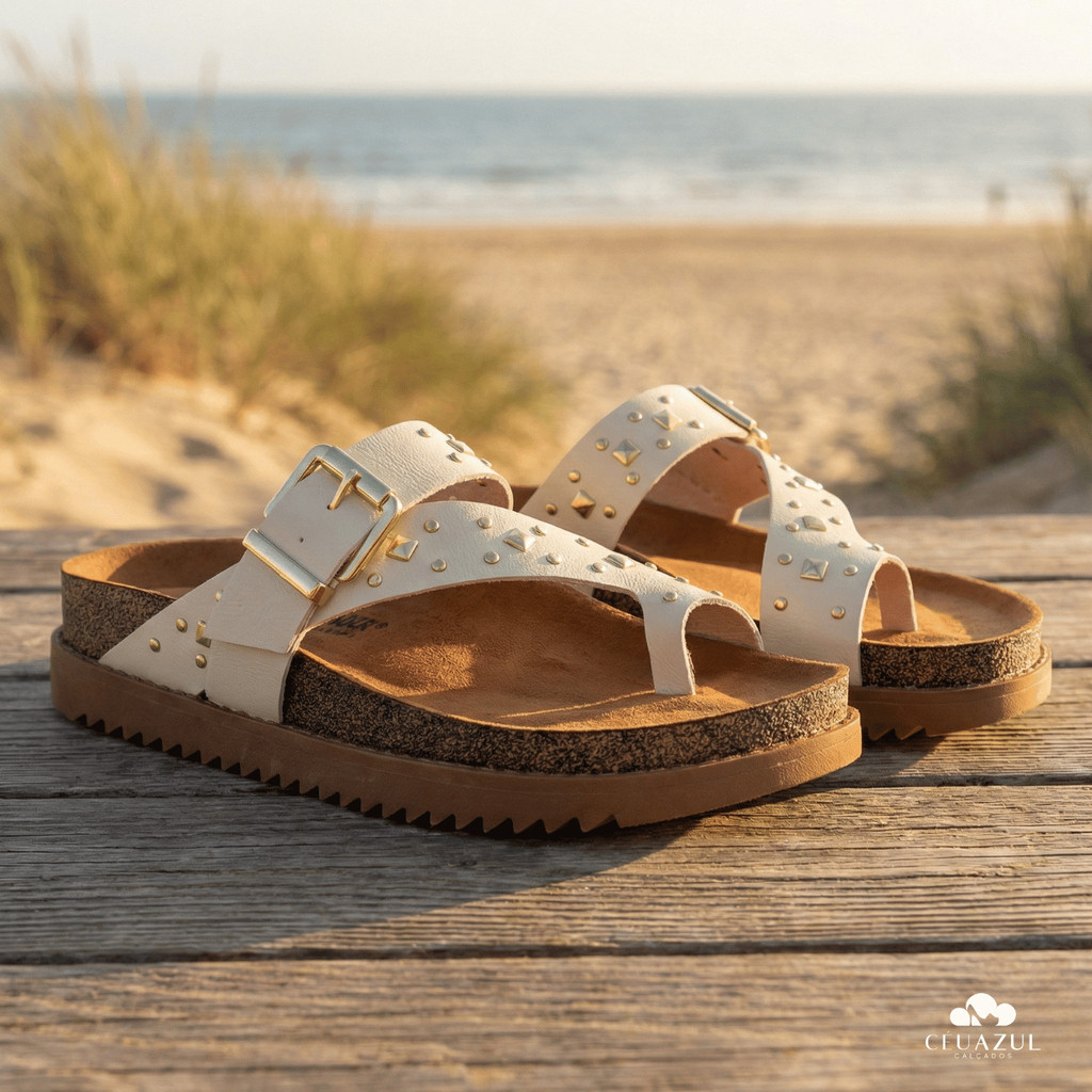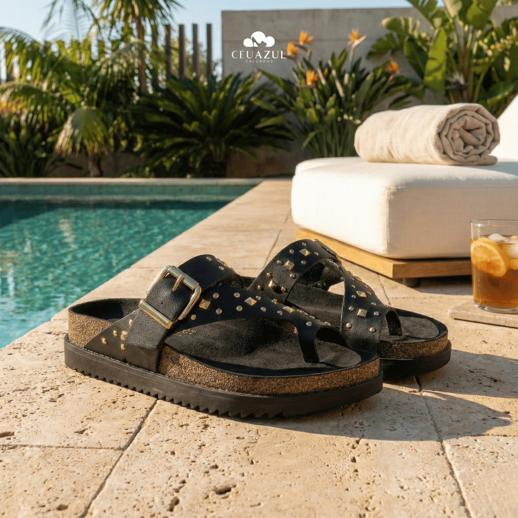 Sandália Feminina Moleca Papete Tratorada Tachas Fivela Original