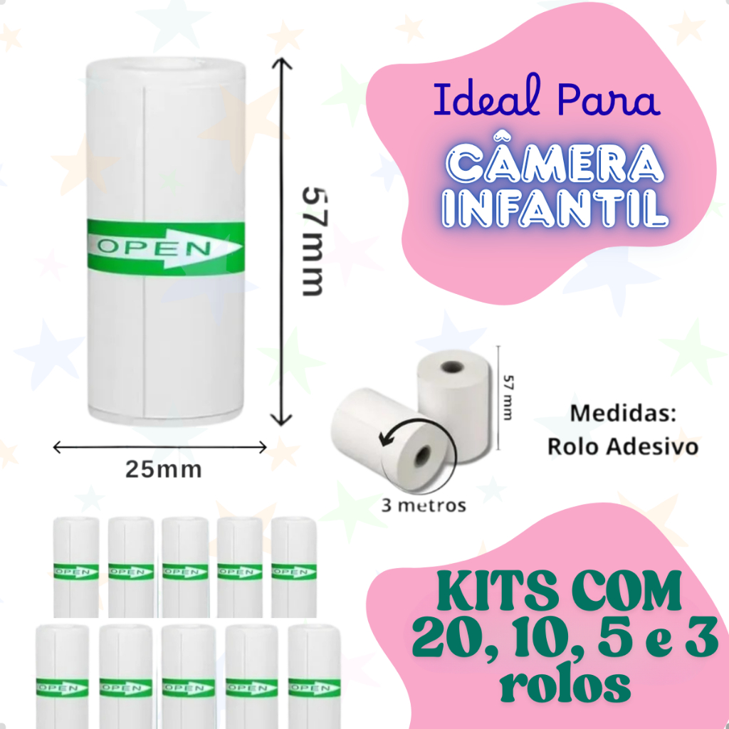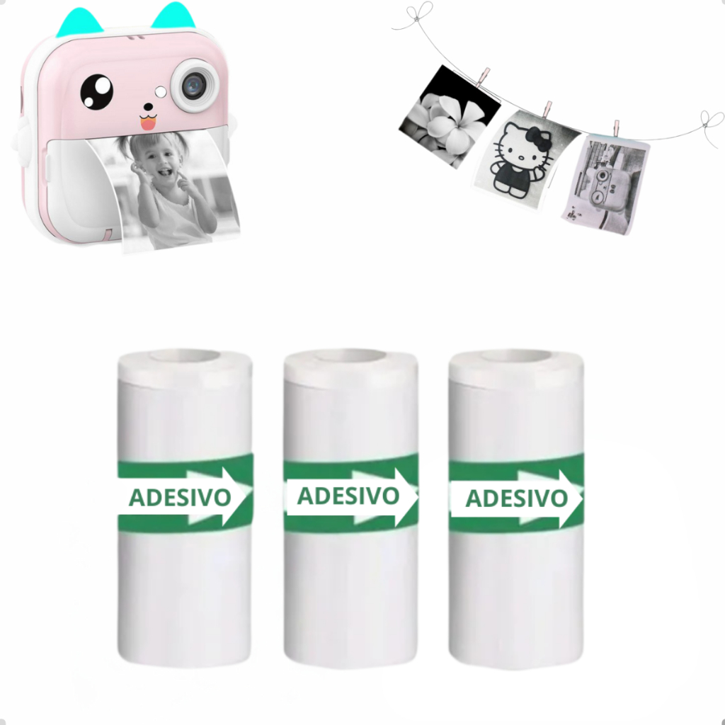 Rolos Refil Papel Adesivo Para Câmera Instantânea Mini Impressora Portátil Térmica Etiqueta Maquina Fotográfica
