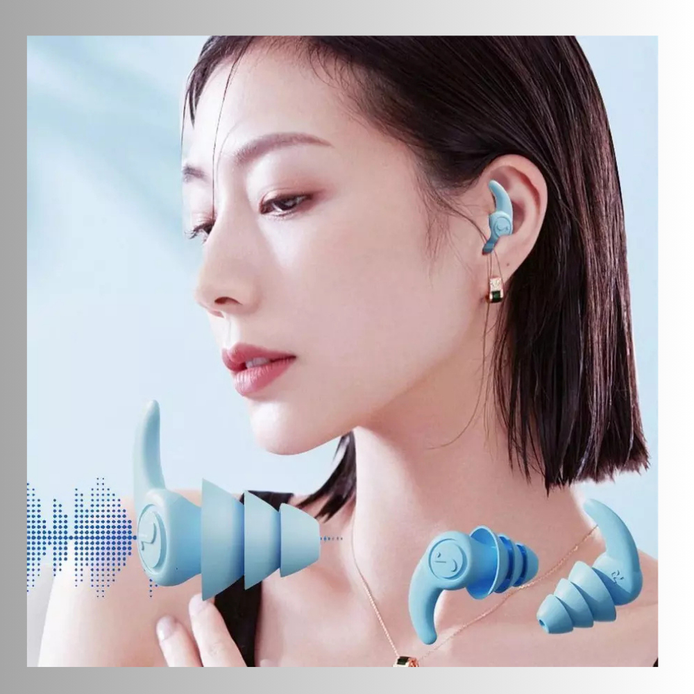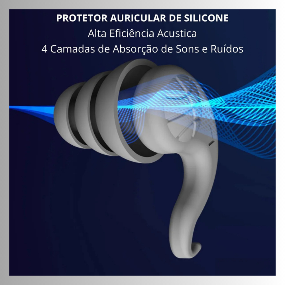 Kit 1 2 4 Protetor Auricular Tampão de Ouvido Abafador Antirruído Silicone 3 Camadas Antirruído Dormir Estudo Natação