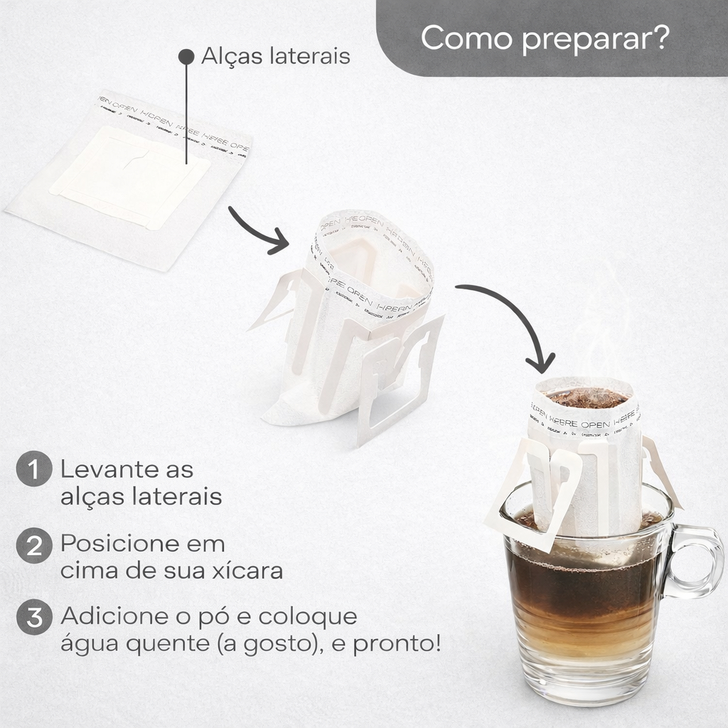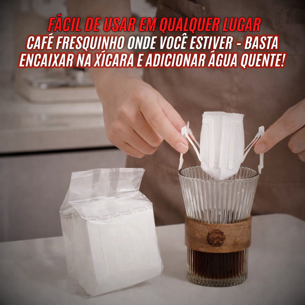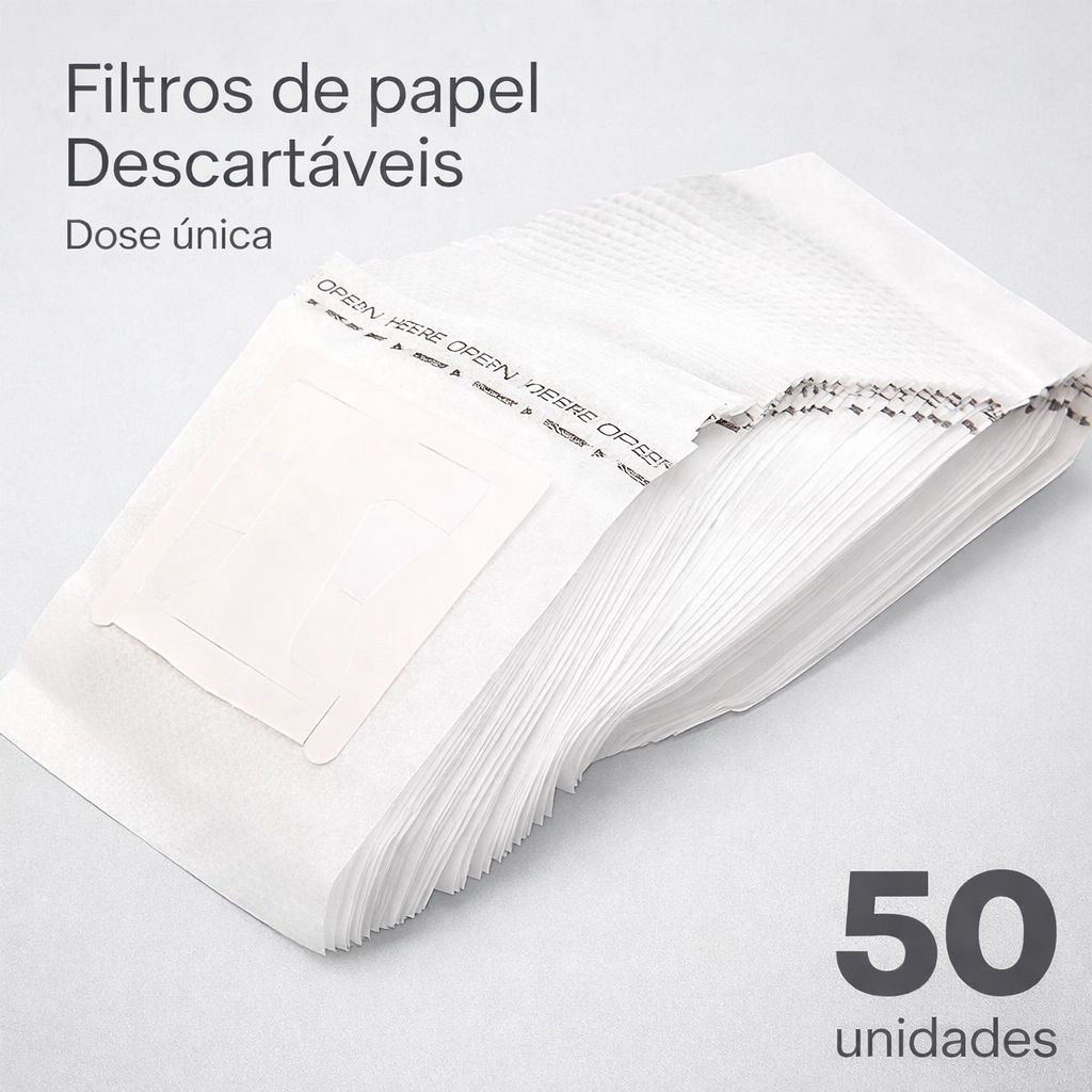 Coador de Café Descartável Individual Kit 50 a 150 Filtros de Papel Portátil com Abas para Dose Única