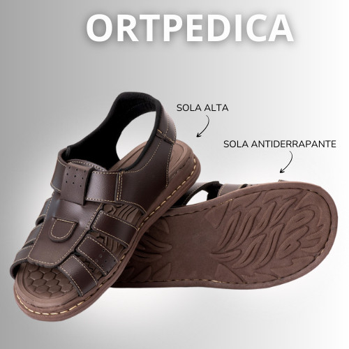 Sandalia Masculina de Couro Legitimo Ortopédica de Couro Sintético Sola Anti Stress Anti Derrapante