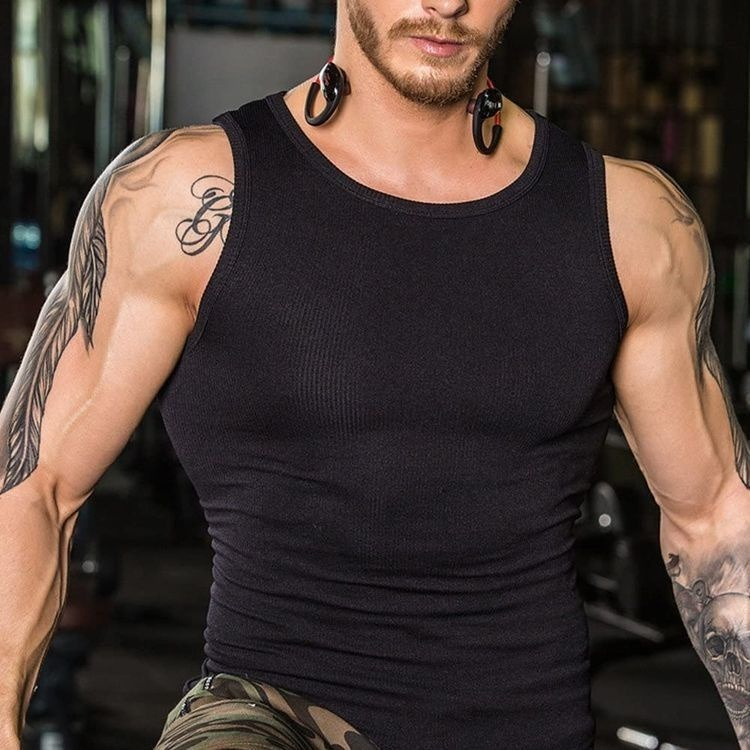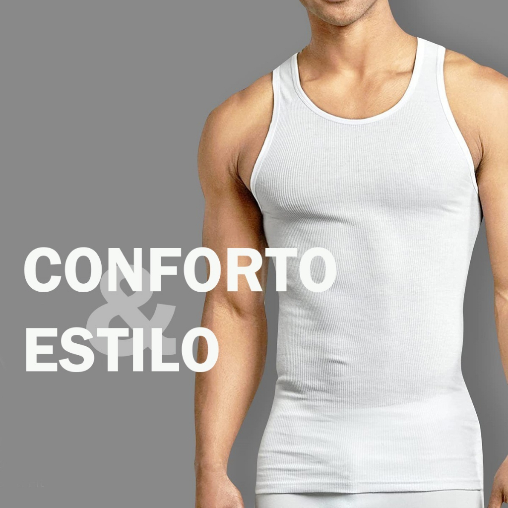 Regata Masculina Modelo Americano Ribana Canelada Agodão e Elastano