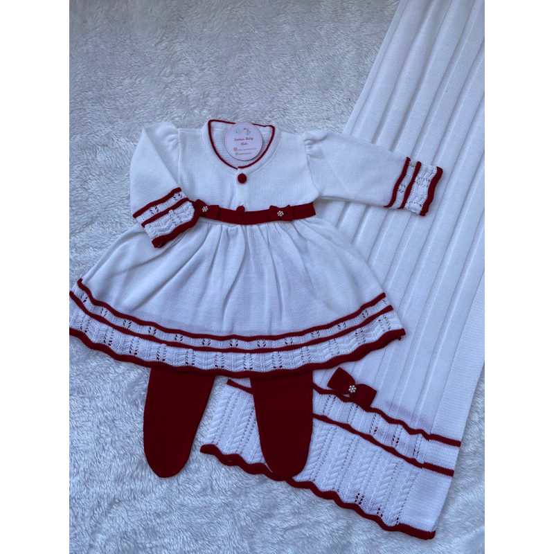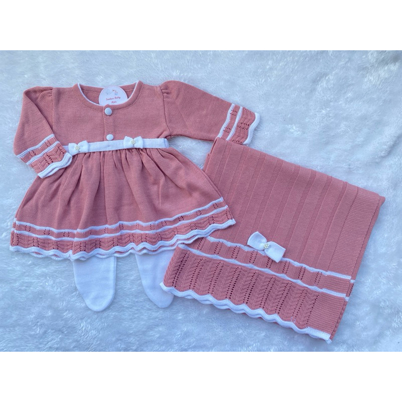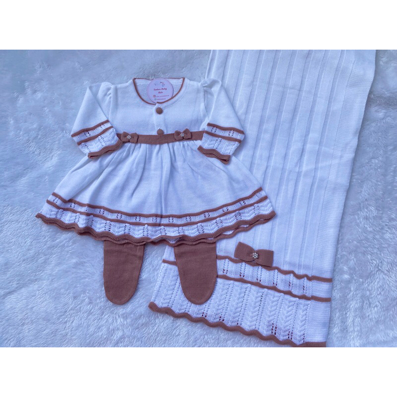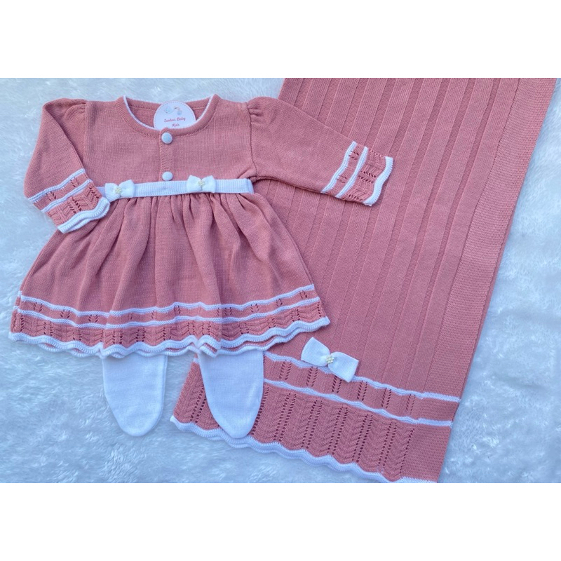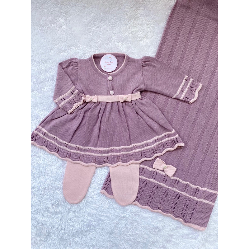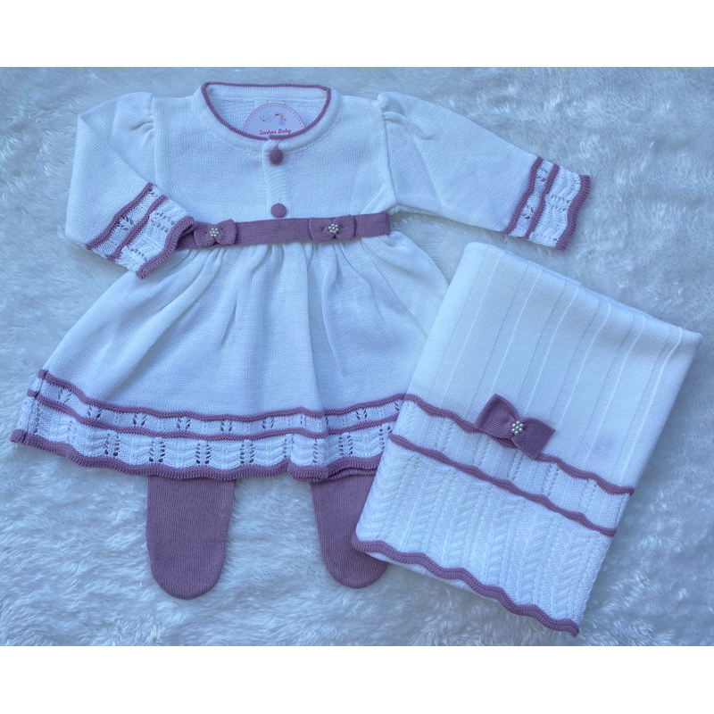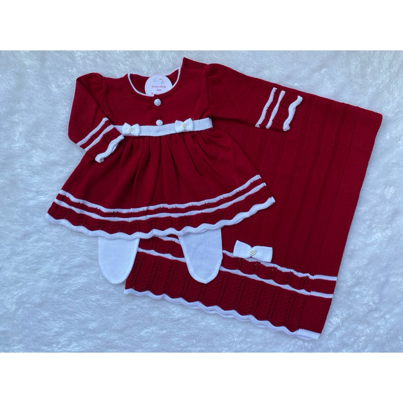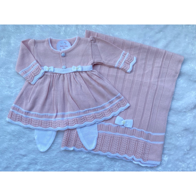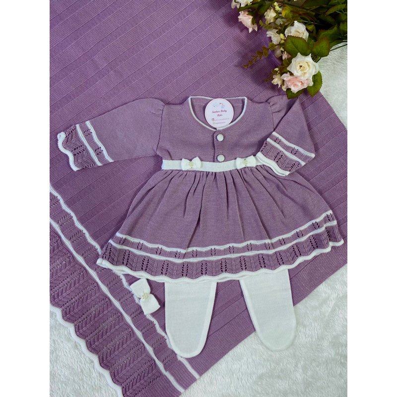 Conjunto Saída Maternidade Menina Vestido Recem Nascido Tricot Princesa Completa 3 Peças