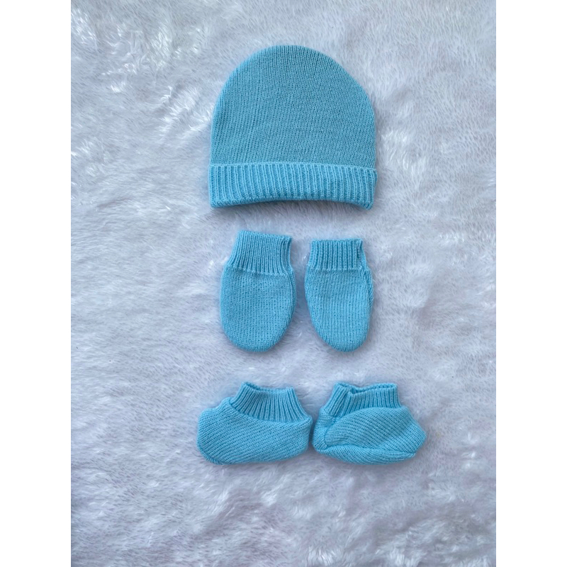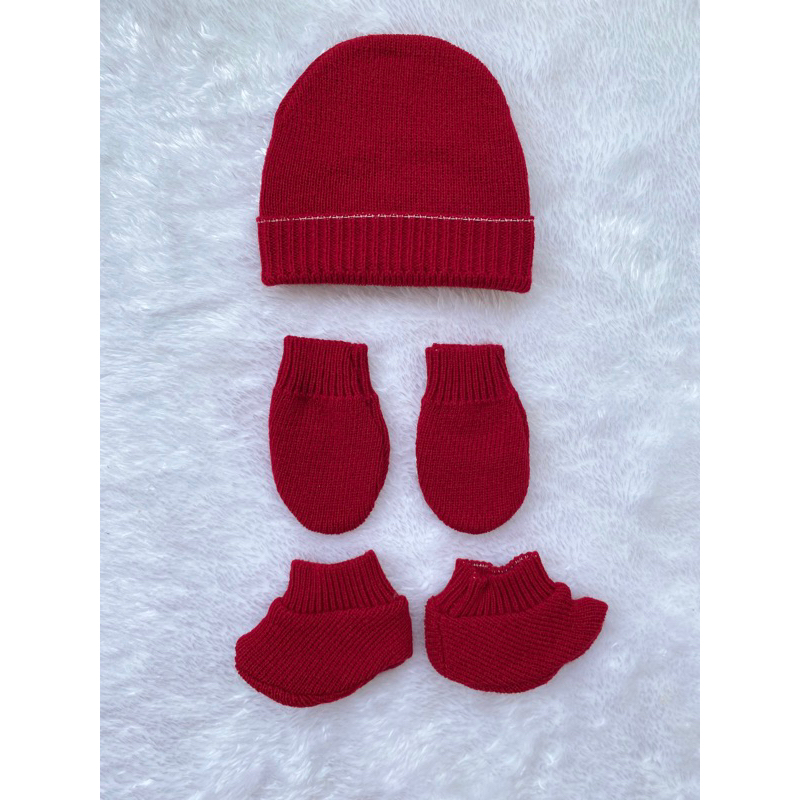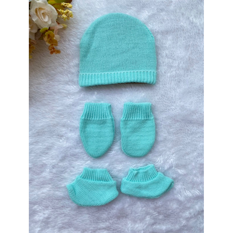 Kit de gorro e luvas recém nascido em tricot verde vermelho azul