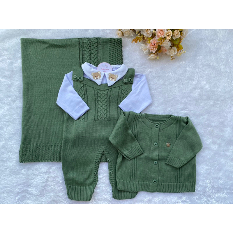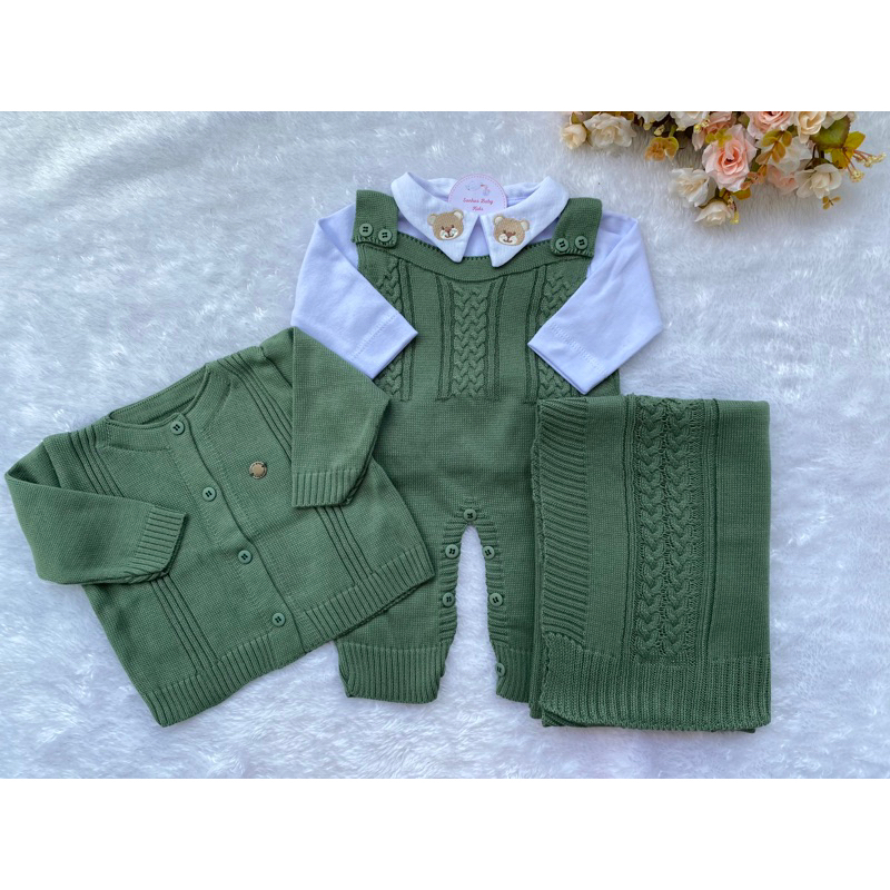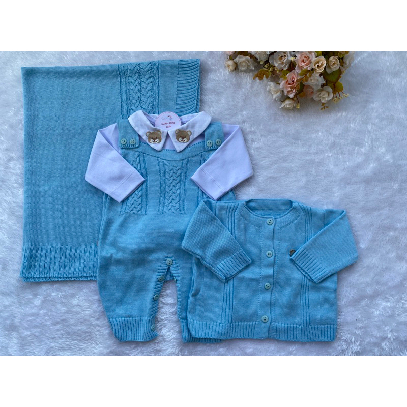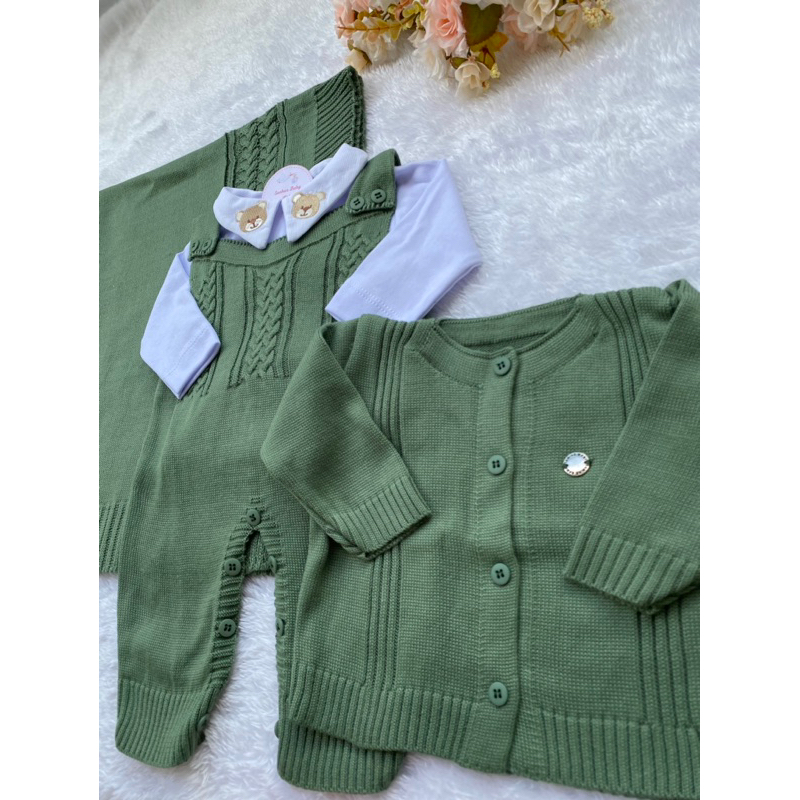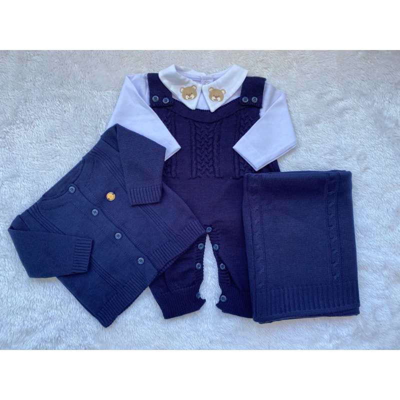 Conjunto Saida Maternidade Menino Bebe Recem Nascido Completa Trico