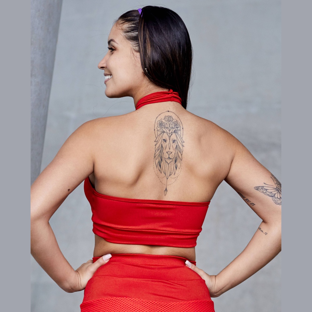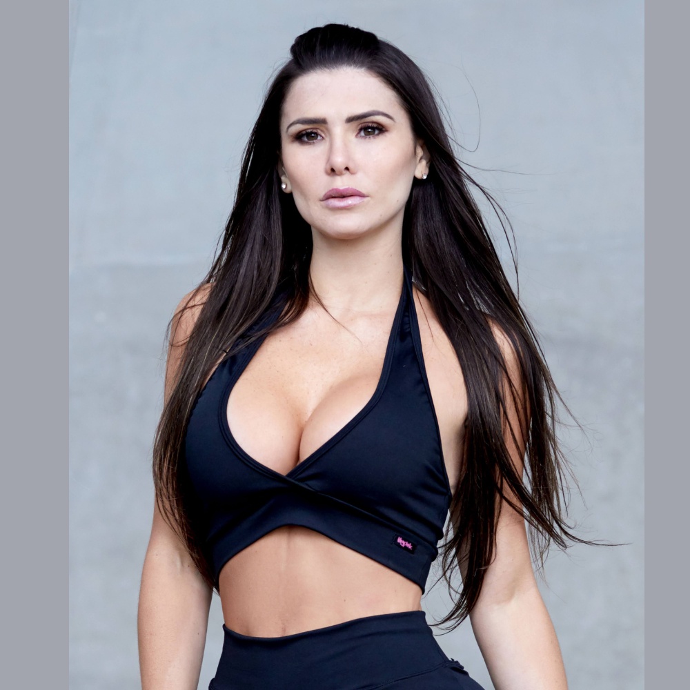 TOP Fitness Feminino Alça Cruzada Costas de fora Poliéster Academia MELINA