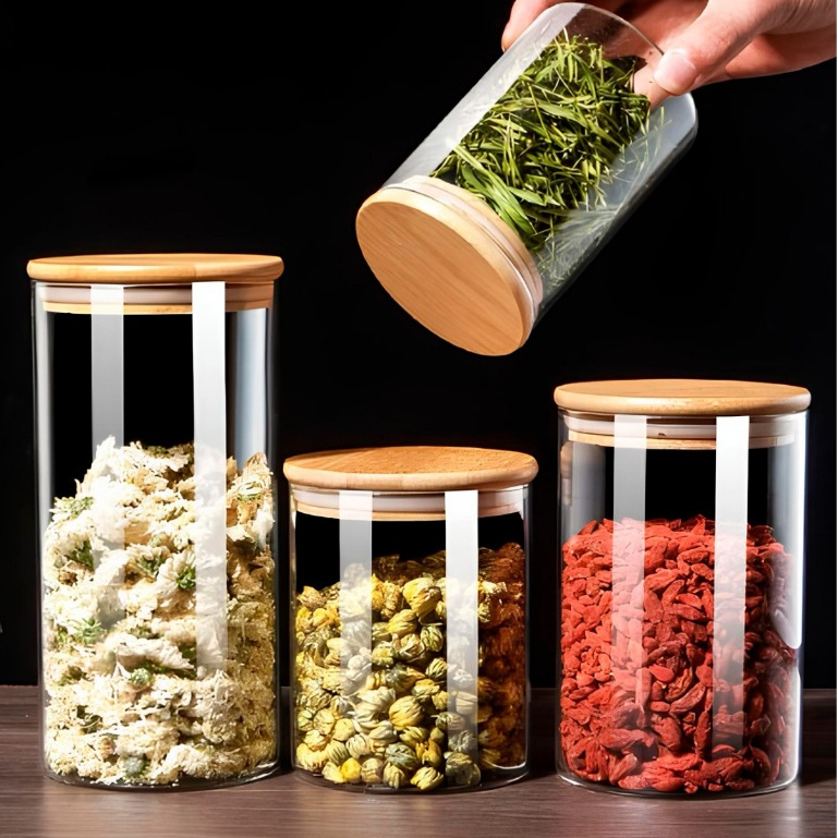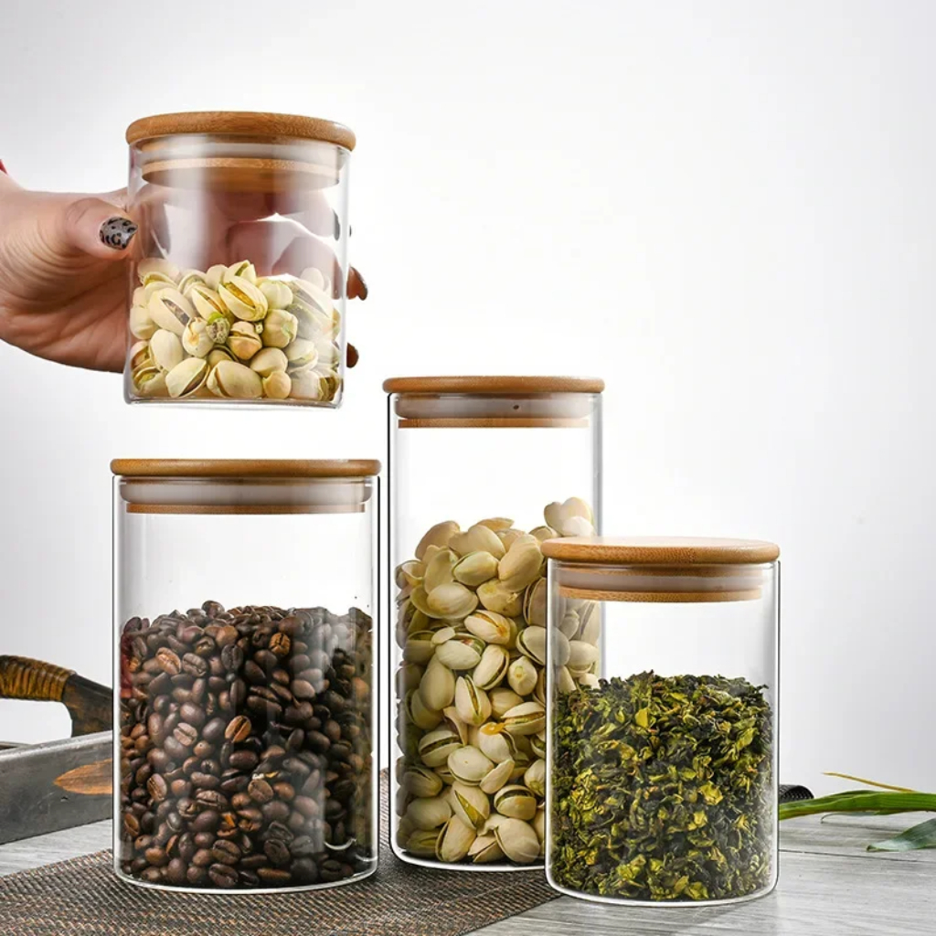 Conjunto de Potes Herméticos com Tampa de Bambu - 3/4/5 peças
