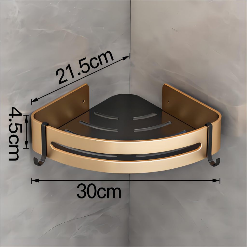 Kit 2 Acessórios para banheiro, rack de armazenamento de banheiro em alumínio preto com dourado