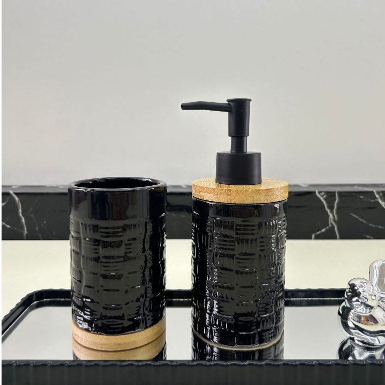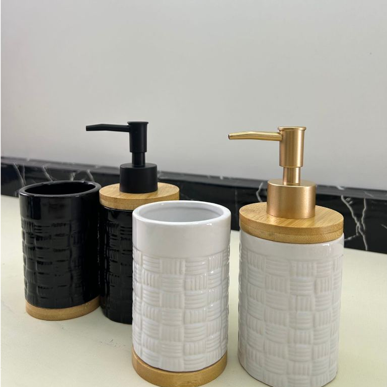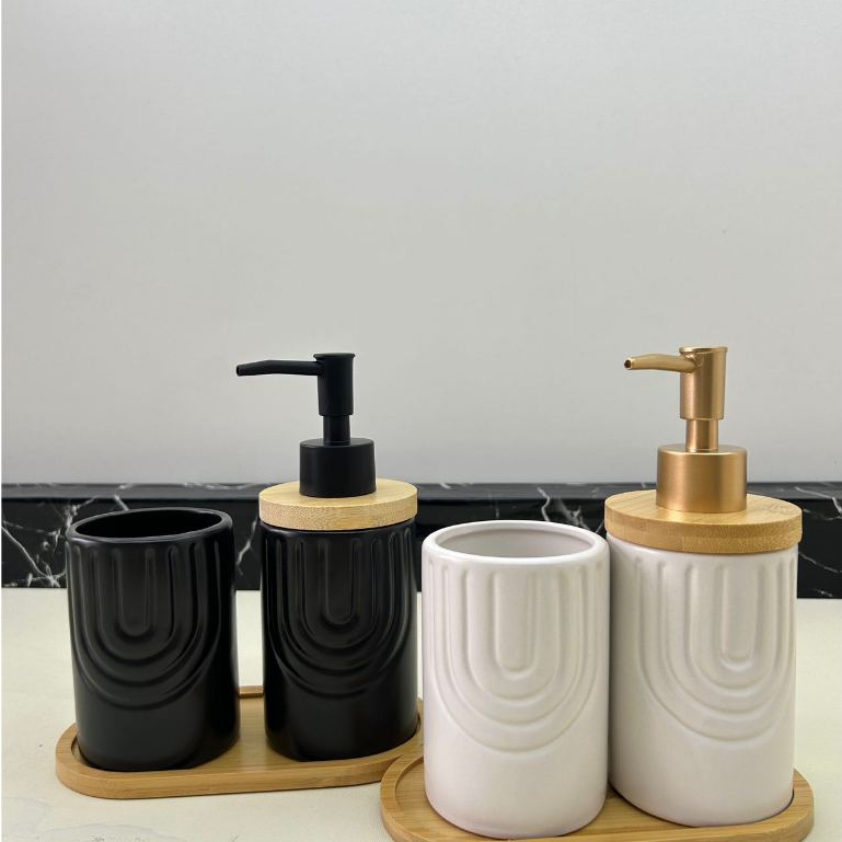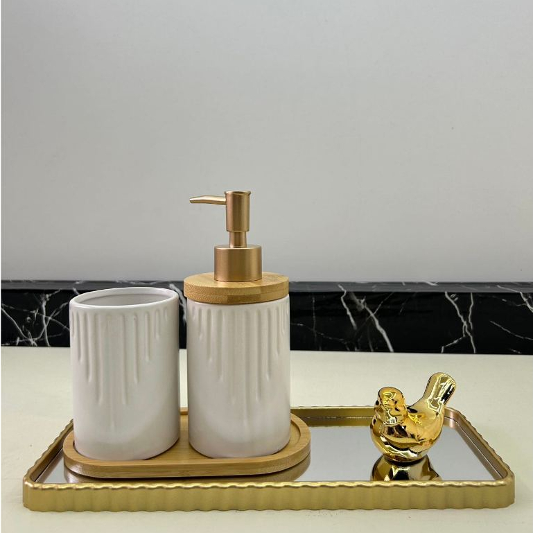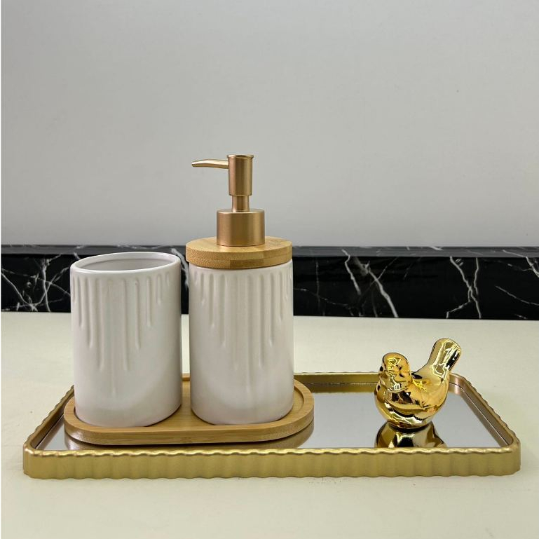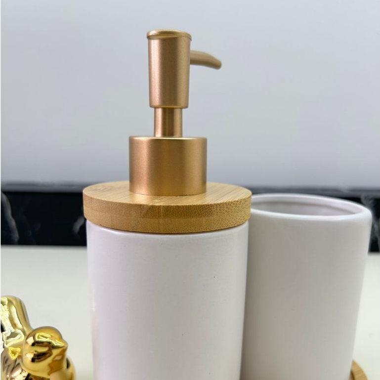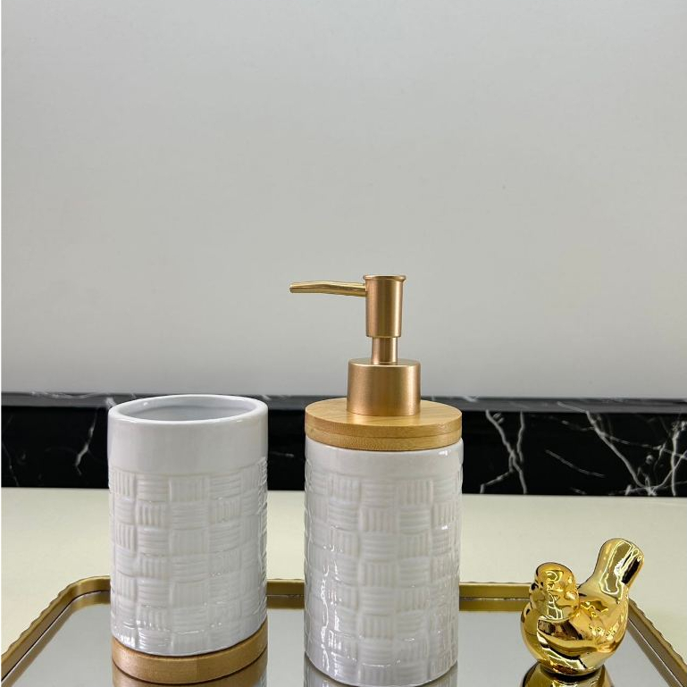 Kit Jogo de Banheiro Lavabo Porcelana 2 Peças Com Dispenser Sabonete Líquido e Porta Escova de Dente