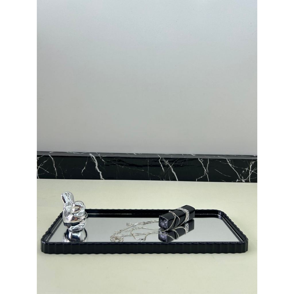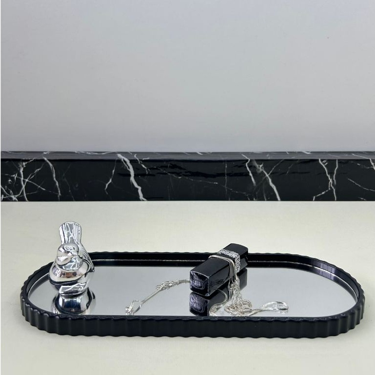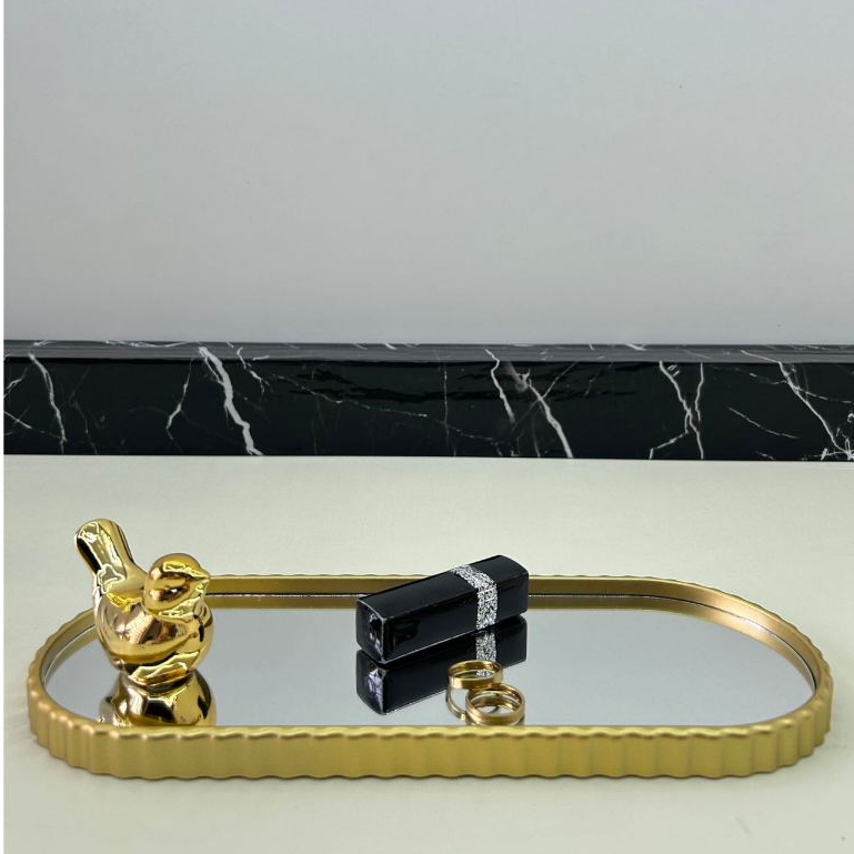 Bandeja Espelhada Banheiro Lavabo Bandeja Decorativa Multiuso Preta Dourada