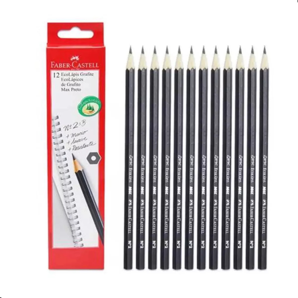 Lápis Preto Ecolápis Grafite Nº2 Faber Castell Caixa C/ 12 Unidades Escolar Escrita Macia Não Quebra