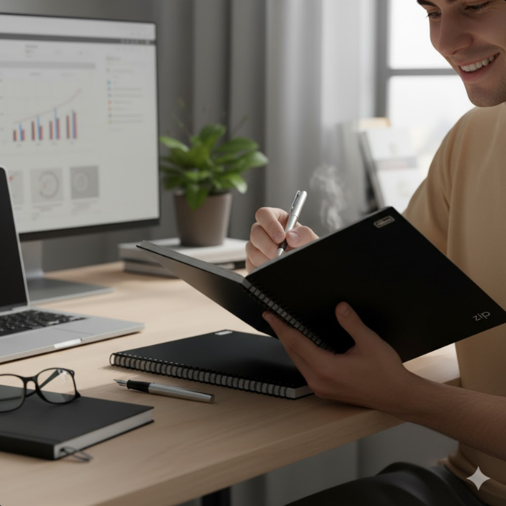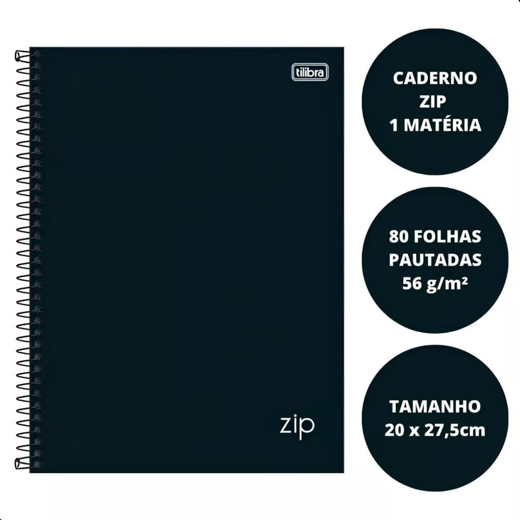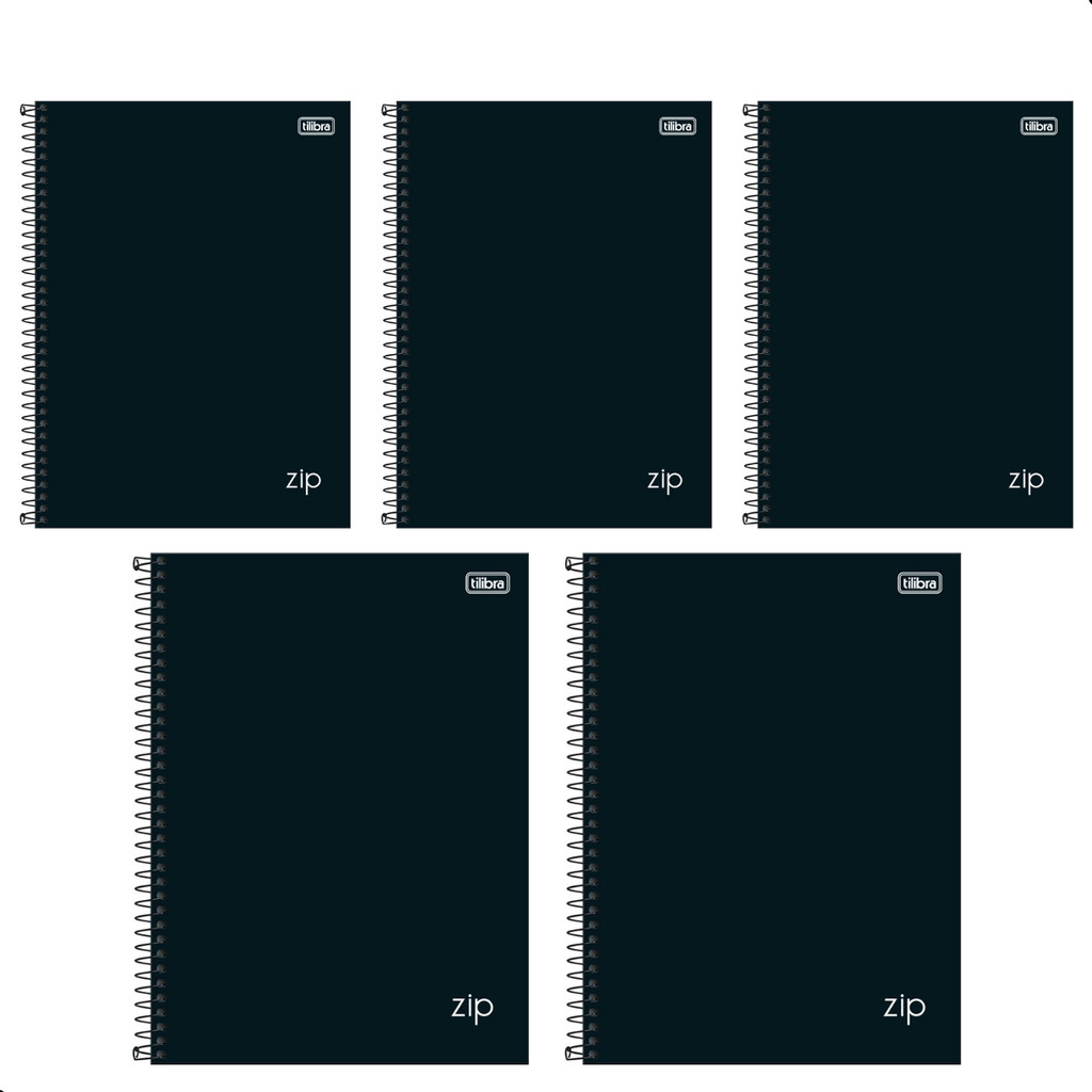 Kit 5 Caderno Universitário Espiral Zip Preto 1 Matéria 80F Escola Faculdade Estudo Organização