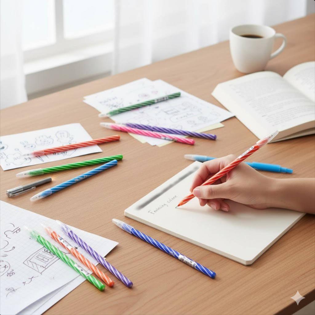 Caneta Esferográfica CIS Spiro Ponta Fina 0.7 Kit com 8 Cores para Escola Escritório Estudo Desenho