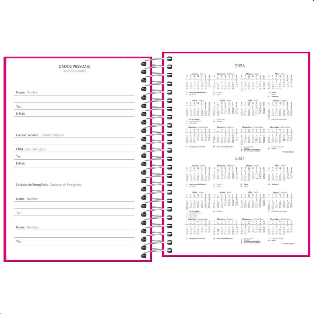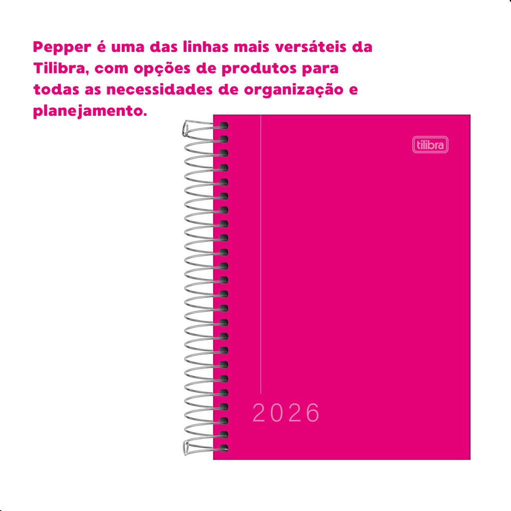 Agenda 2026 Espiral Tilibra Pepper Rosa Diária 11,7x16,4 Cm