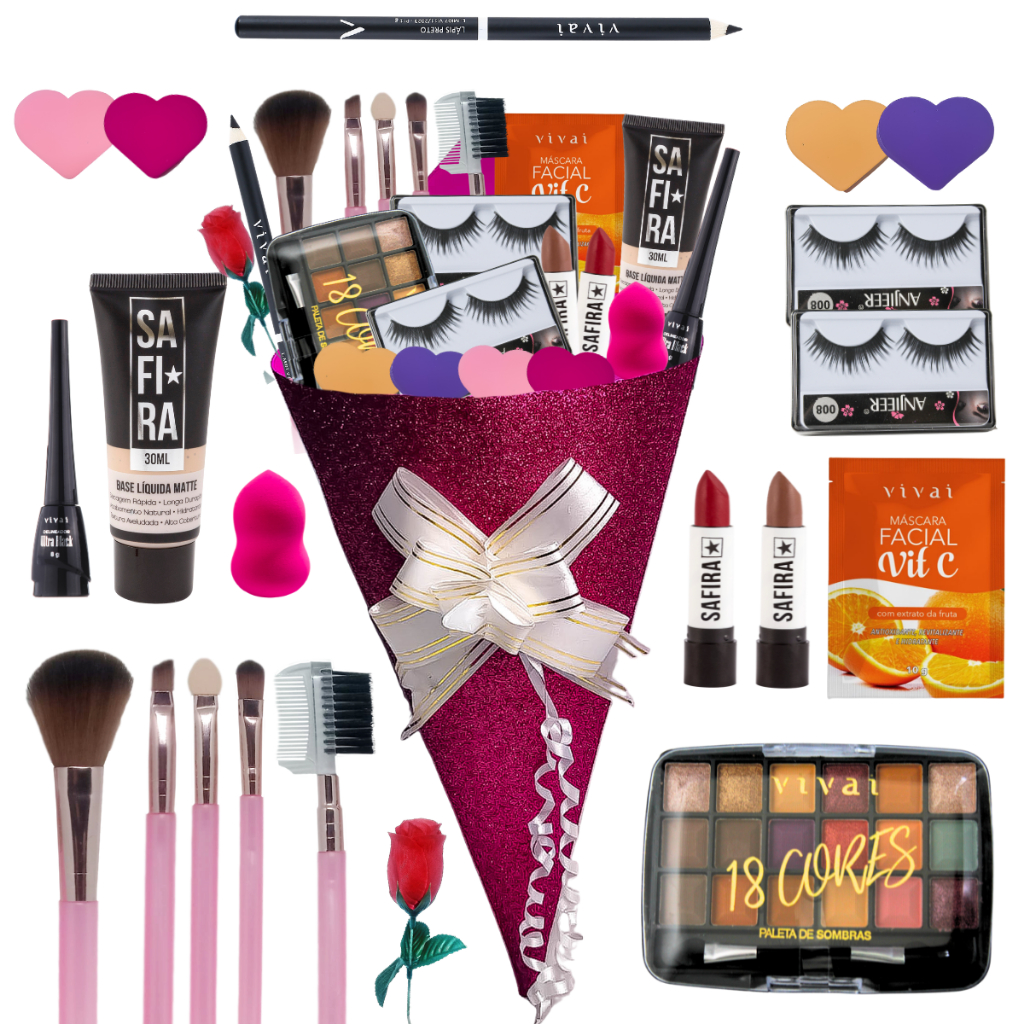 Buquê De Maquiagem Mulher Para Presente Top Completo Namorada Lindo