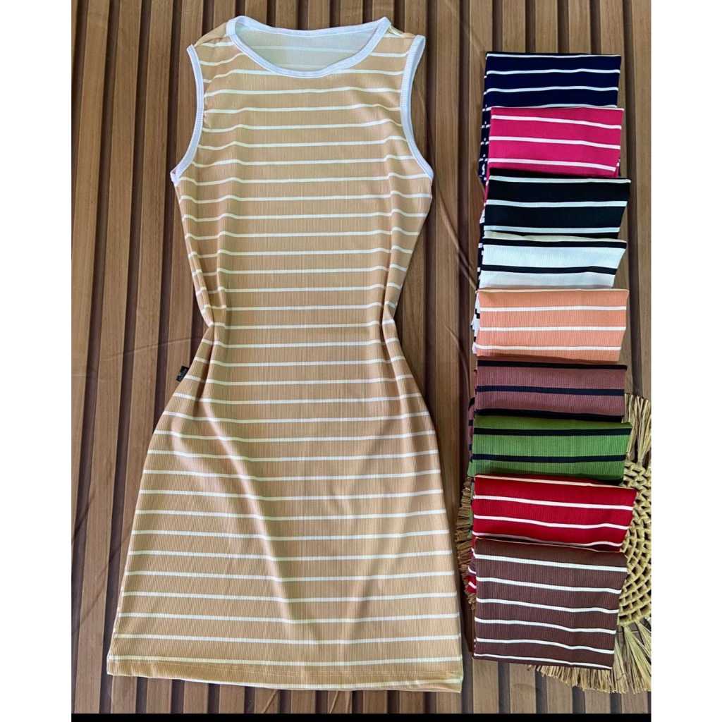 Kit 3 Vestidos RegataCanelado Feminino Listrado Ribana